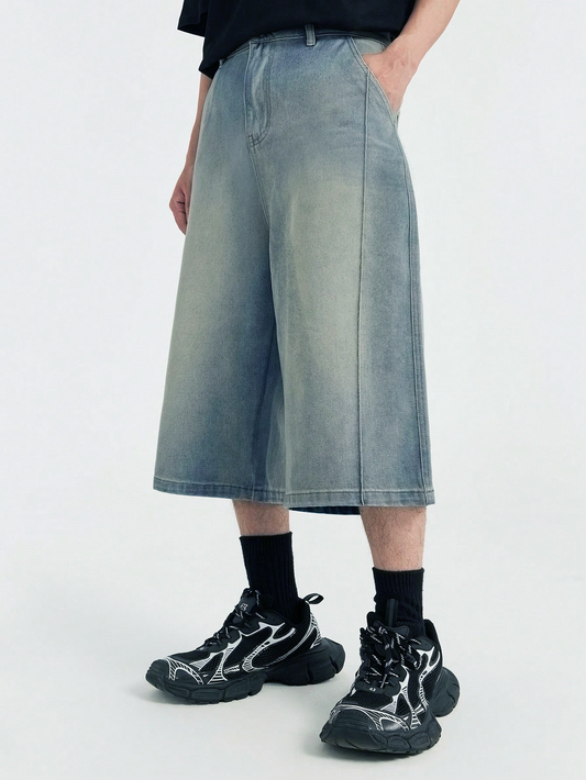 Blue Acid Wash Flap Pocket Side Cargo Jeans