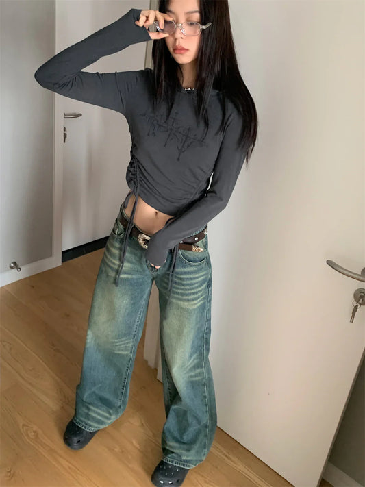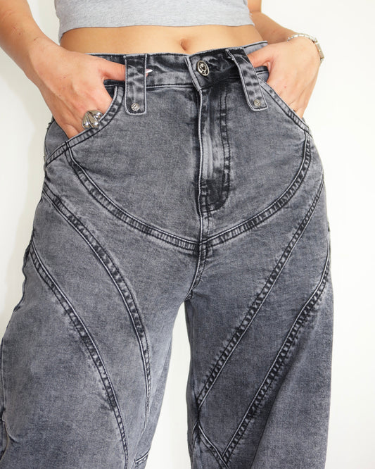 Lunar Grey Raw Waist Baggy Wide Leg Cargo Jeans