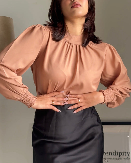 Gathered neck blouse with bishop sleeves