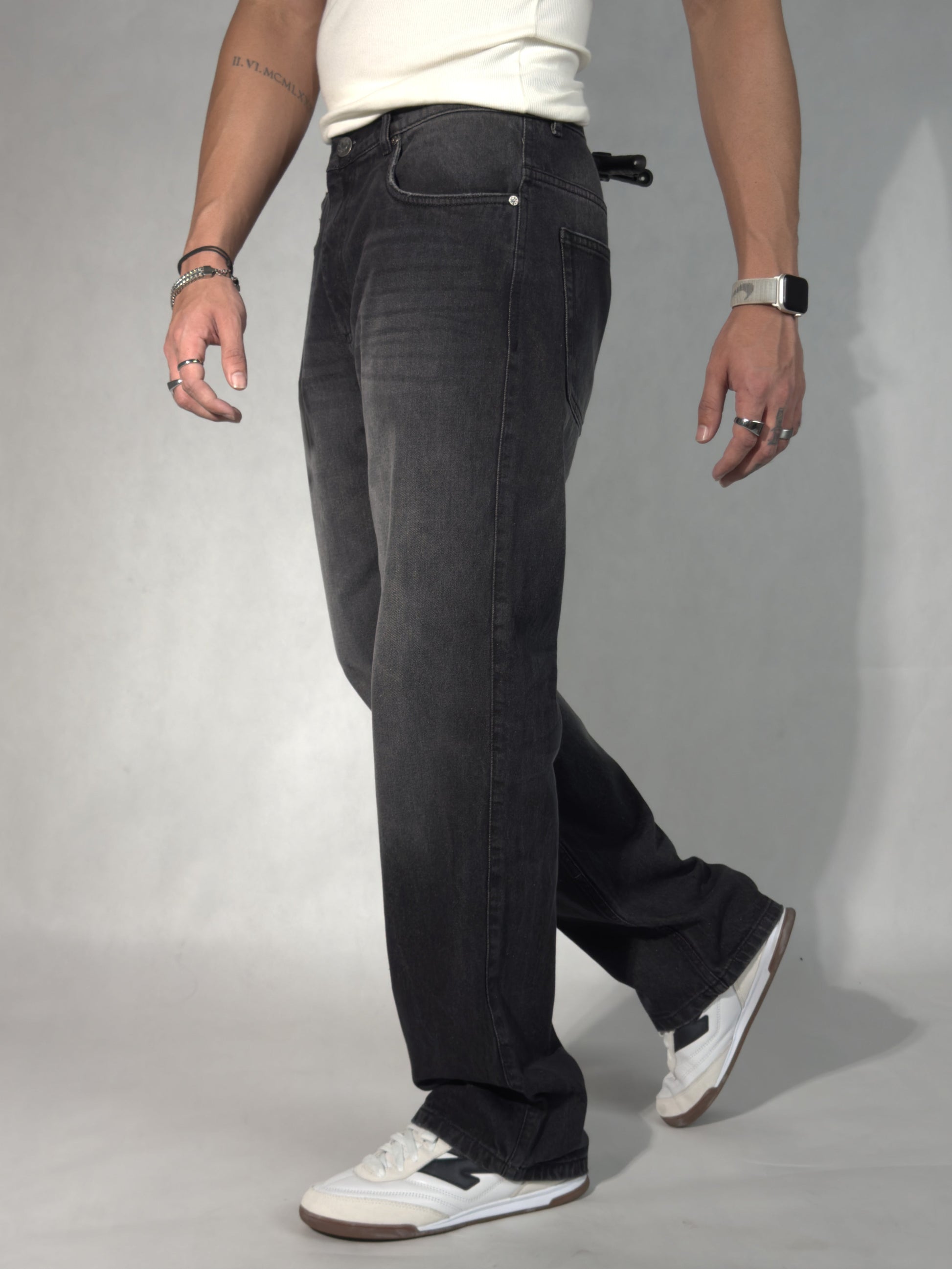 The Ash Black Baggy Fit Rigid Jeans offer a contemporary take on classic denim.