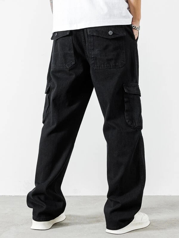 These Black Stretch Cargo Jeans are the perfect fusion of utility and modern streetwear style. Crafted from an 11 oz cotton-spandex blend, they offer a comfortable stretch while maintaining a structured silhouette. The dobby weave enhances durability, while the multiple cargo pockets provide both practicality and an urban edge. Pair them with sneakers and oversized tees for a laid-back street-ready vibe or dress them up with a jacket for a bold, versatile look.