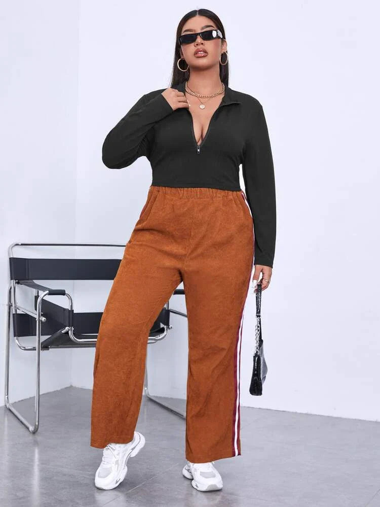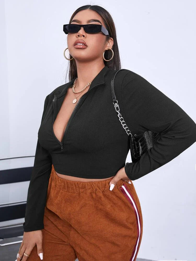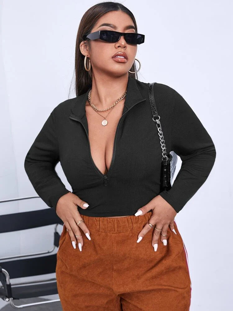 This Zip detail top is everything you need to look stylish and fashionable. Featuring this Black Zip Up Rib Top for our lovely, curvy ladies.