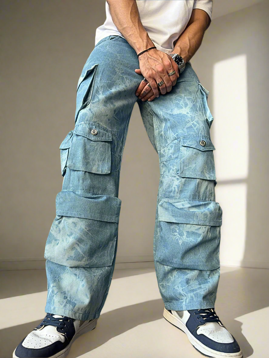 Elevate your style with our premium Bleach Flake Cargo Denim. These denim pants feature a unique bleach flake design and cargo pockets for practicality. Designed with luxury in mind, these pants will add a touch of sophistication to any outfit. Experience the art of fashion with Bleach Flake Cargo Denim.