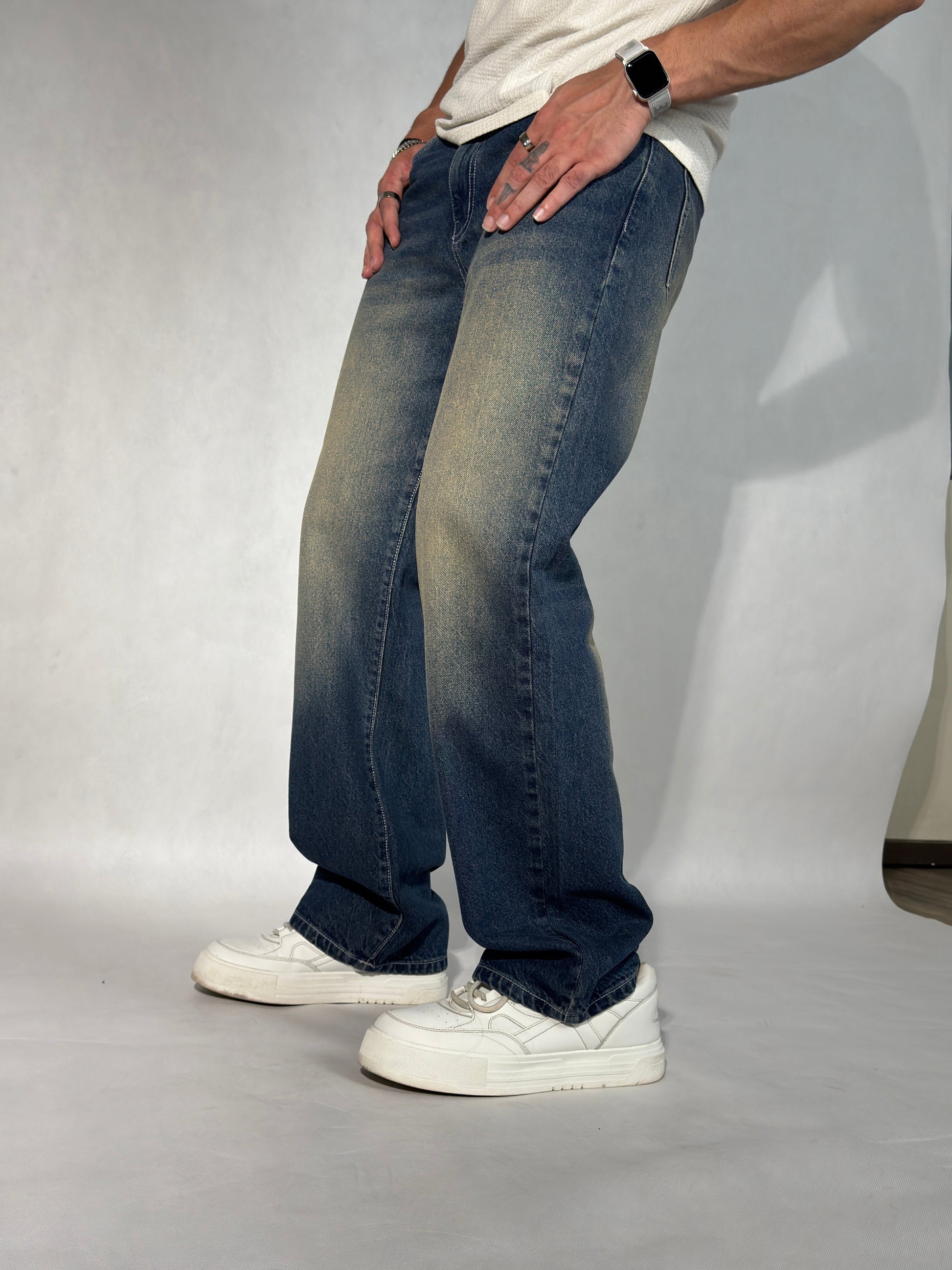 These vintage-washed jeans bring a ‘90s-inspired ease to your rotation. With a low-slung straight-leg fit and exaggerated whiskering, they channel an effortlessly cool energy. The heavy fade across the thighs and knees gives lived-in authenticity, while the rigid cotton construction holds a clean silhouette with weight and presence.