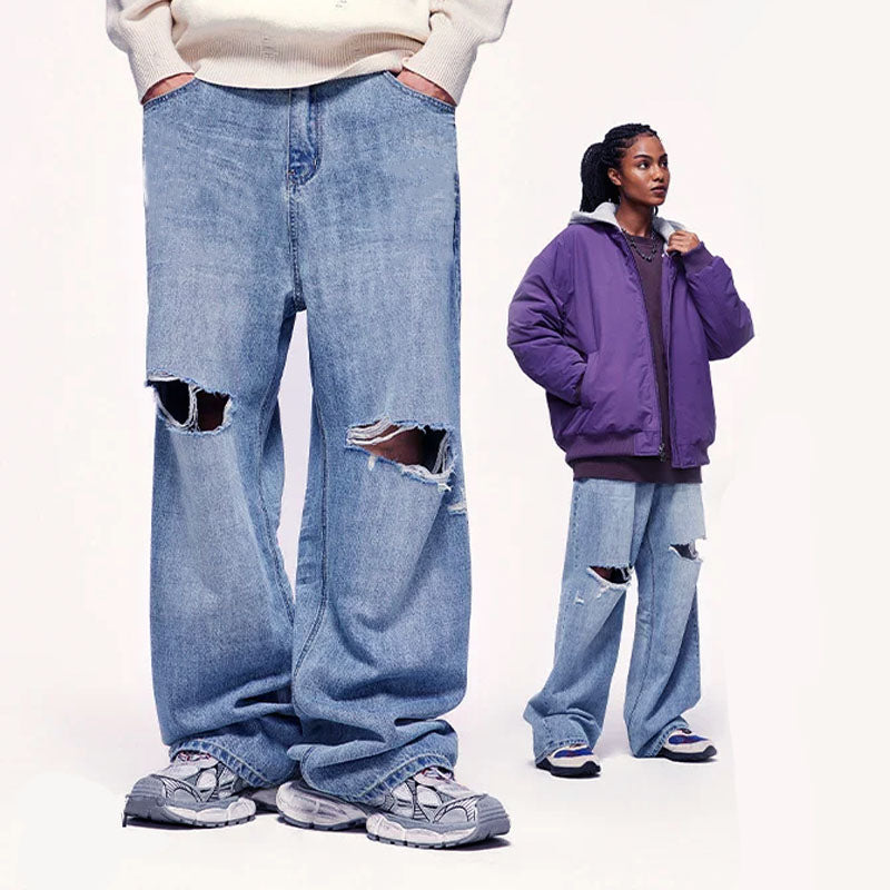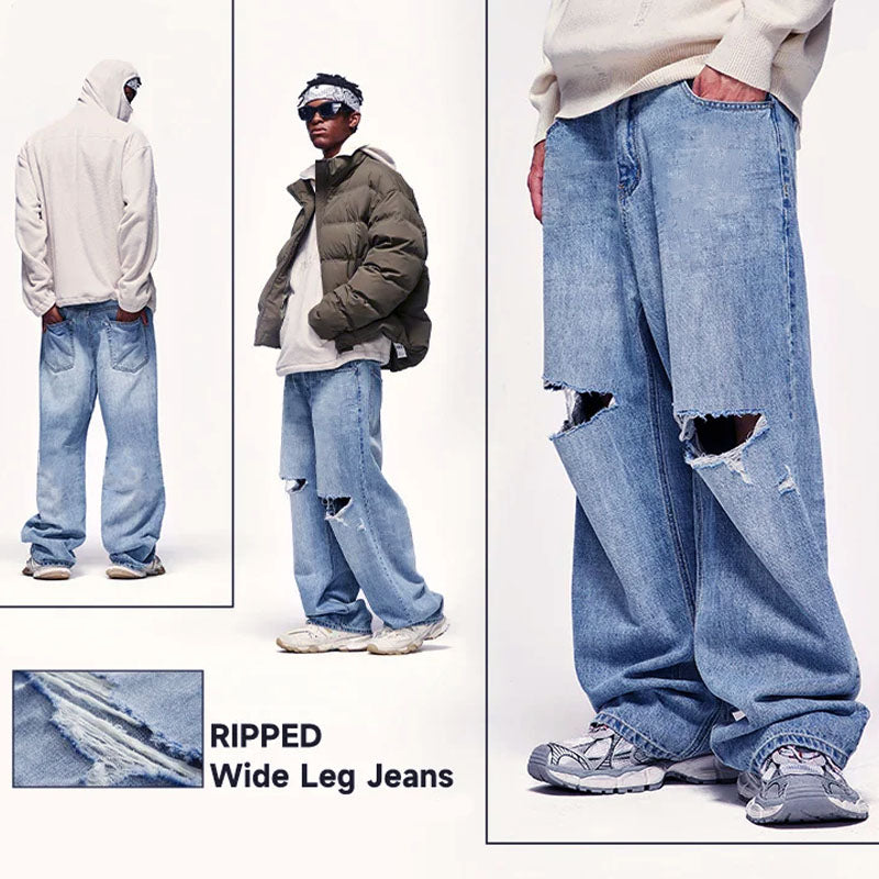 Blue Ripped Wide Leg Jeans