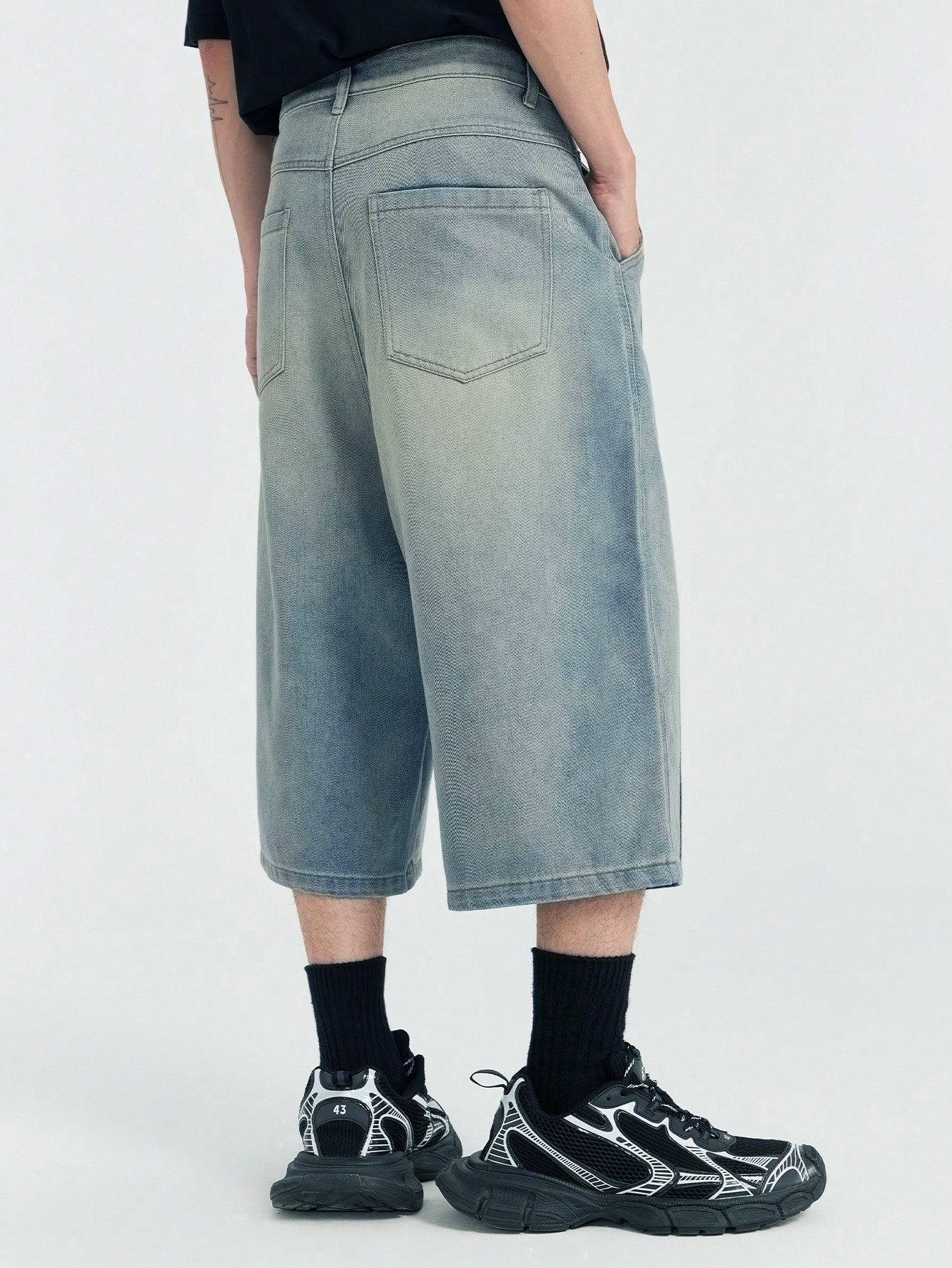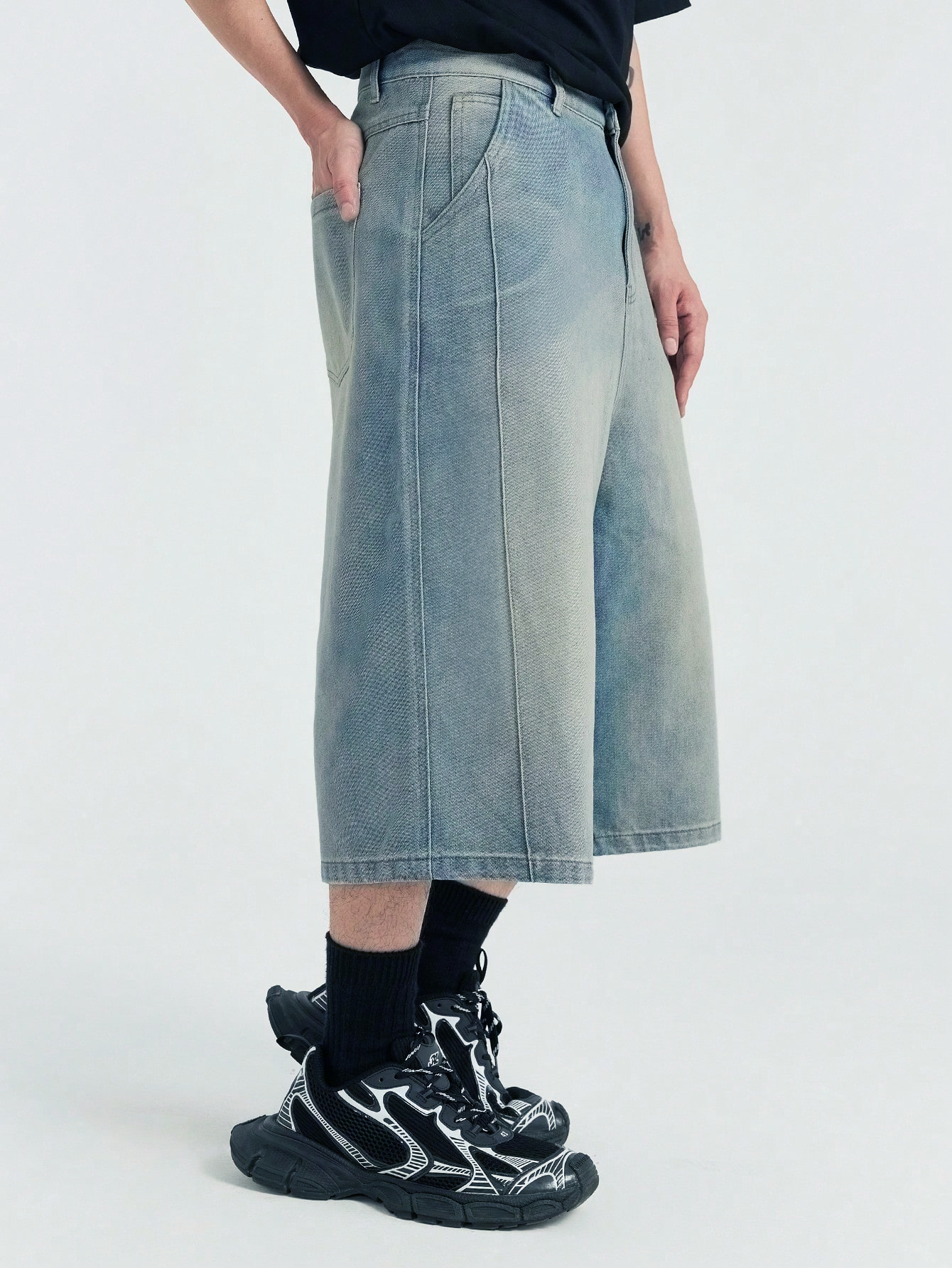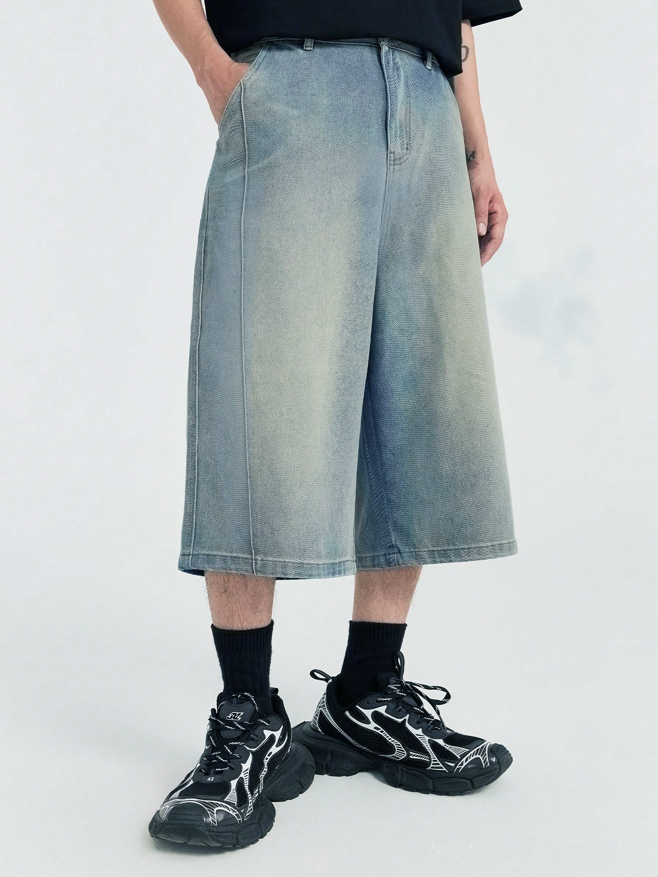 These Wide-Leg Washed Denim Shorts are built for standout comfort and movement. Designed with a roomy, below-the-knee silhouette, they blend classic denim texture with a modern, unstructured edge. A faded wash finish delivers laid-back cool, perfect for off-duty styling.