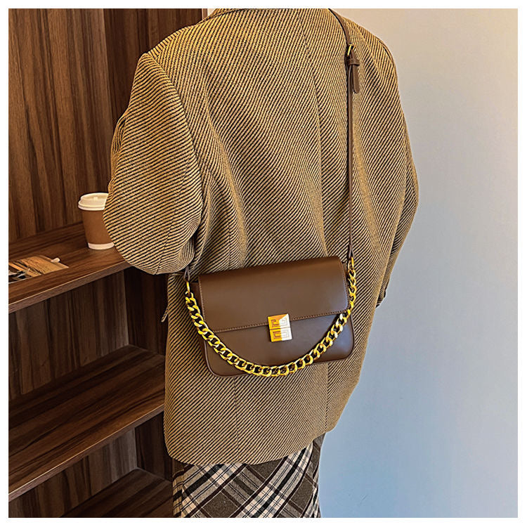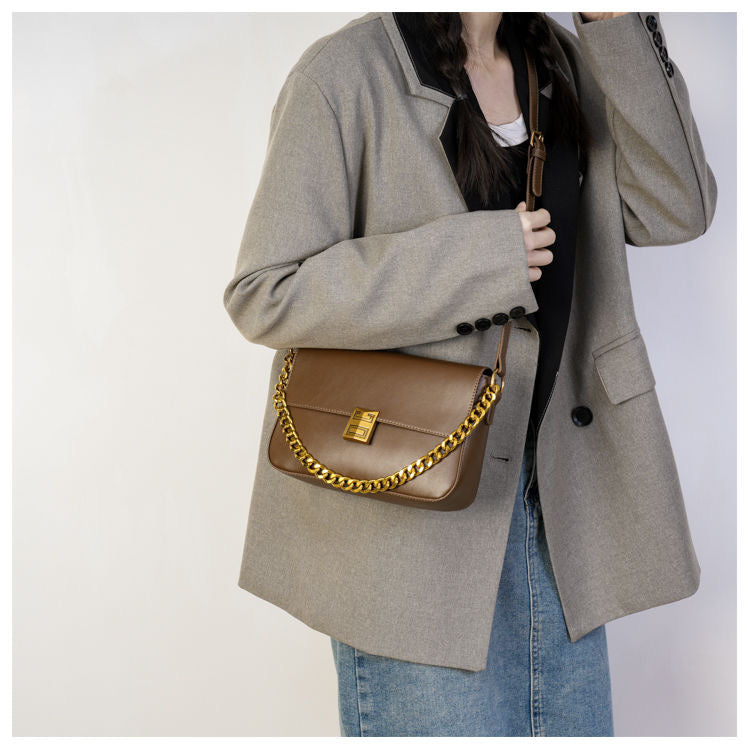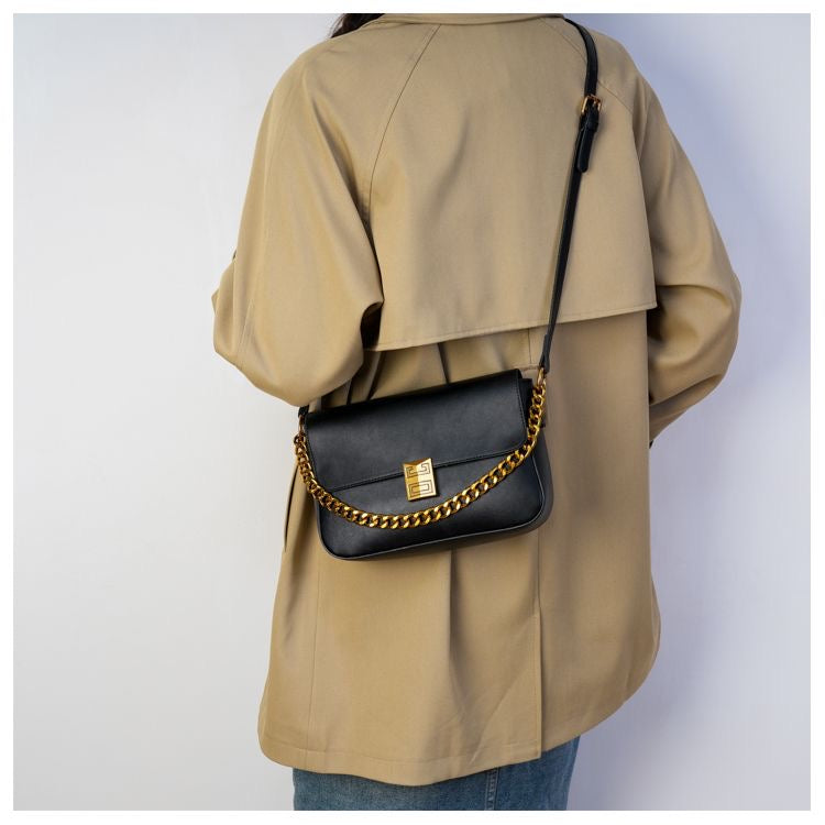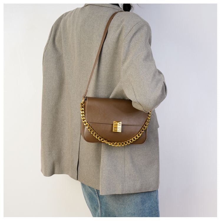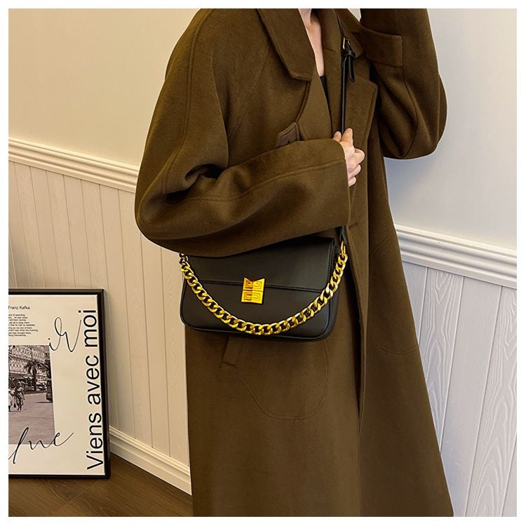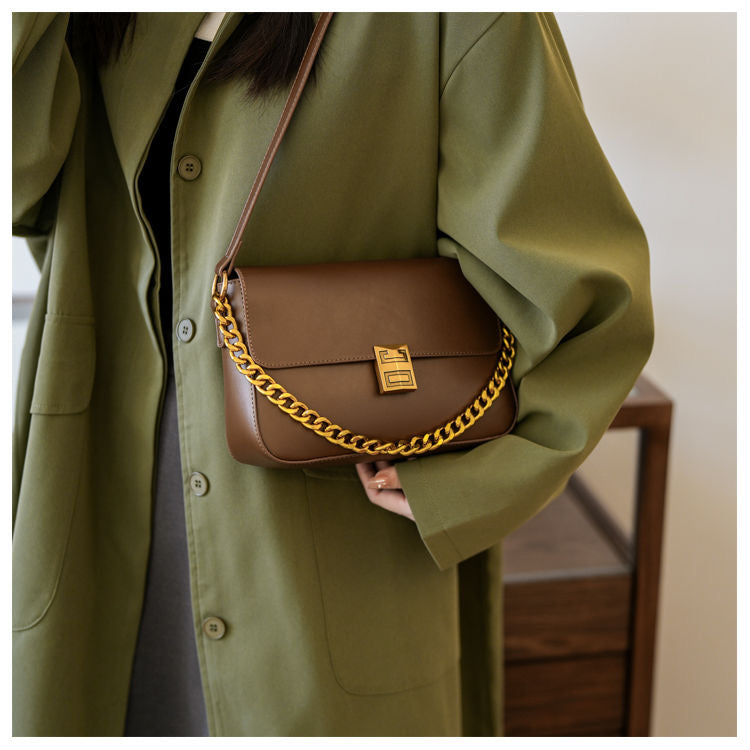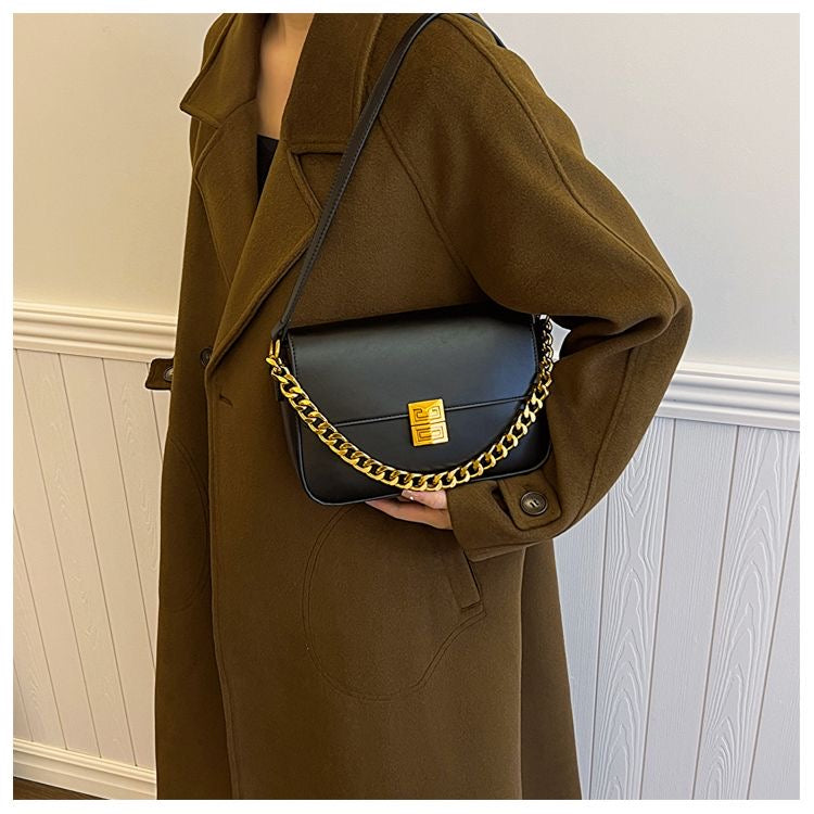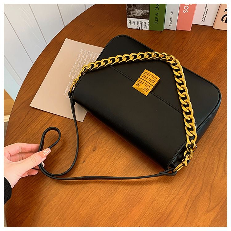 Elevate your style with the Classic Metal Buckle Shoulder Bag, a sophisticated accessory featuring luxurious PU leather with gold buckle and chain details.