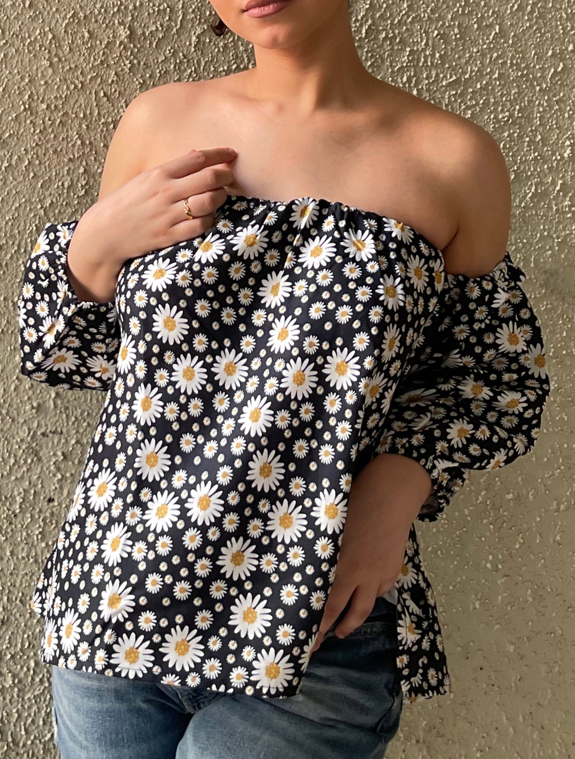 Switch up your summer look with this dreamy off shoulder top. Featuring a cotton rayon flow fabric with choker.