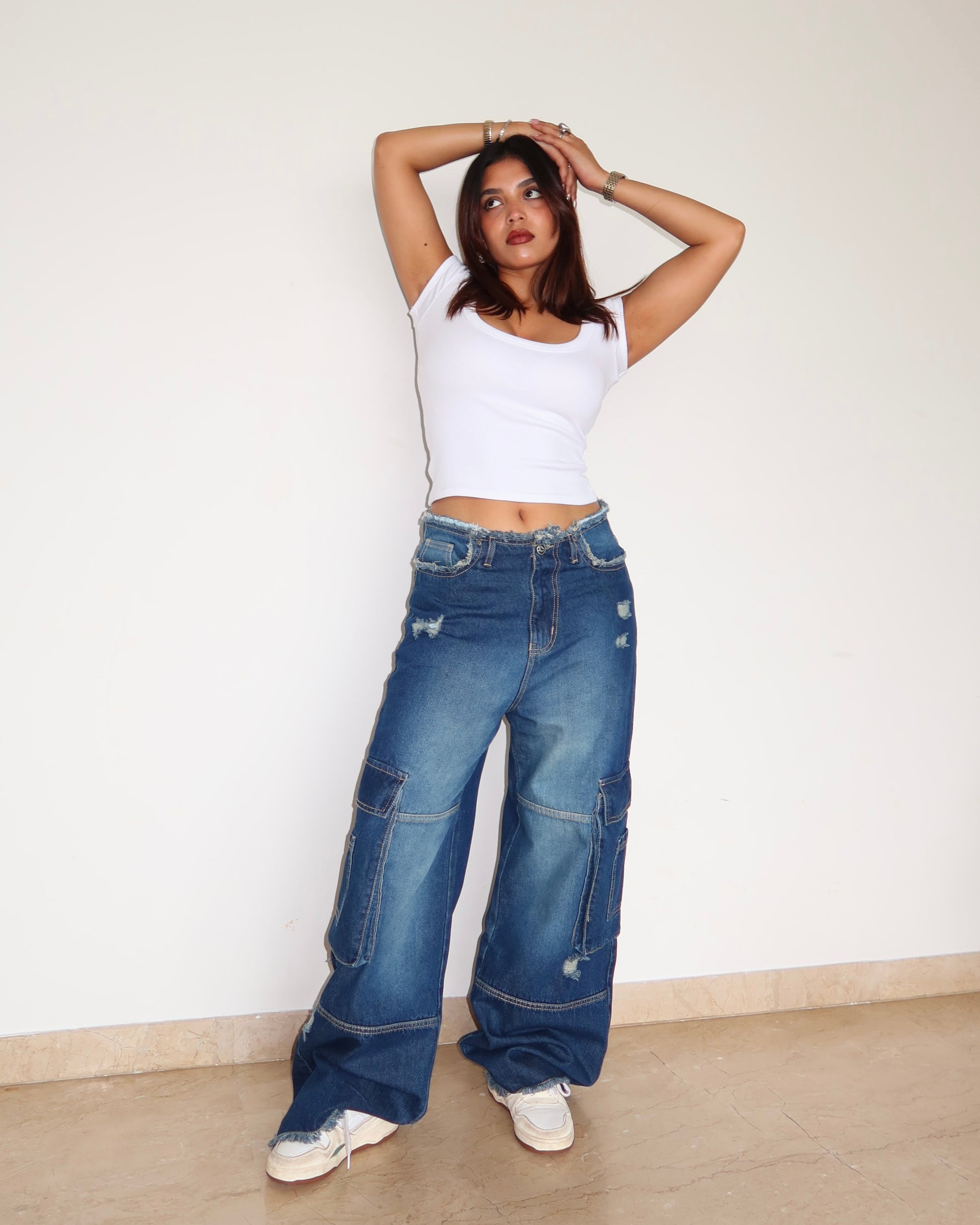 Style: Wide-leg distressed cargo jeans
