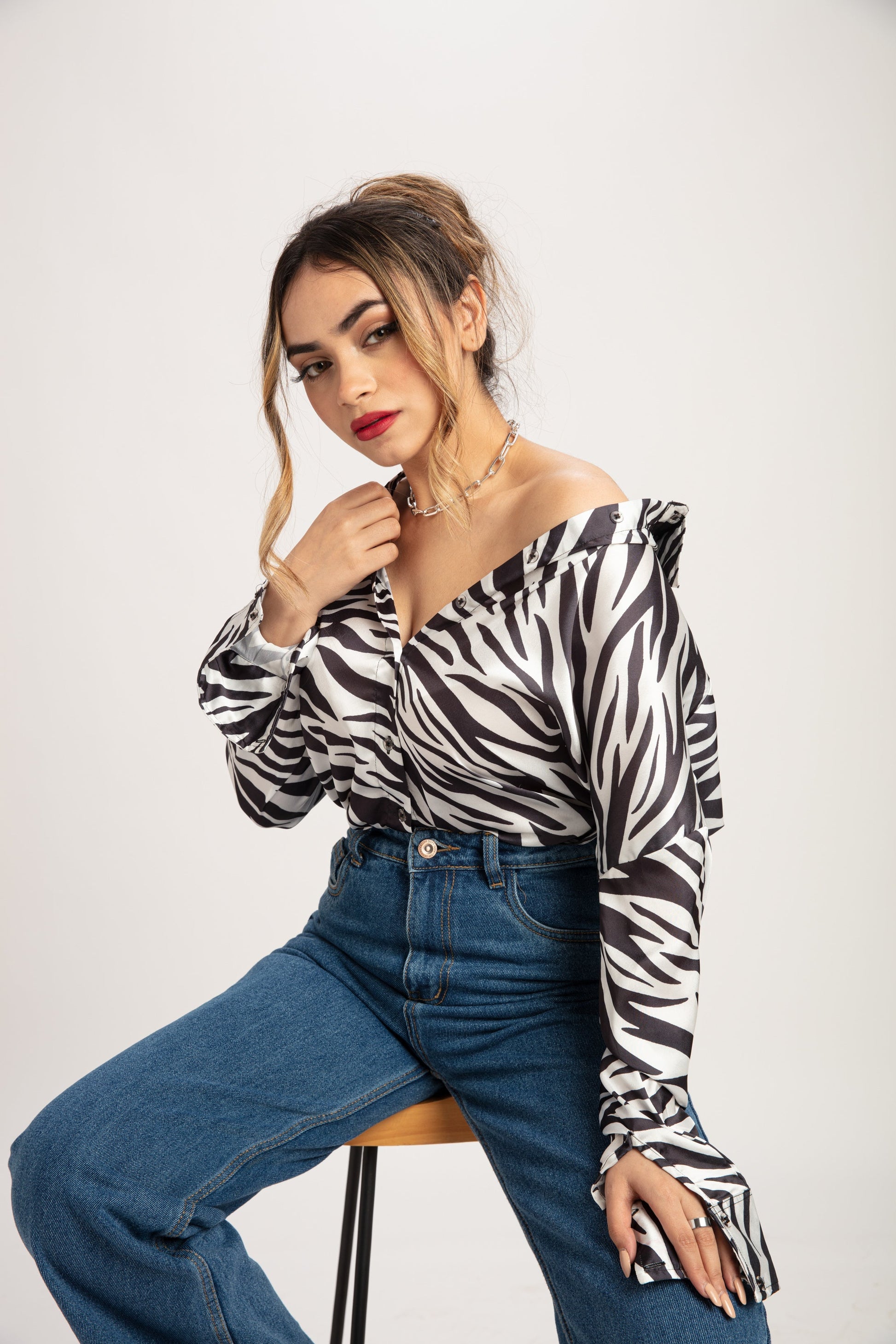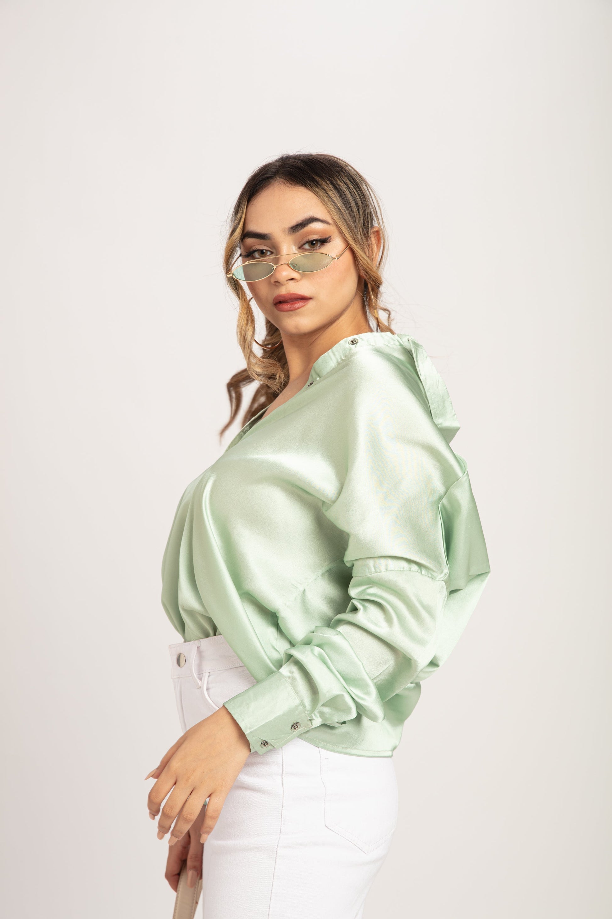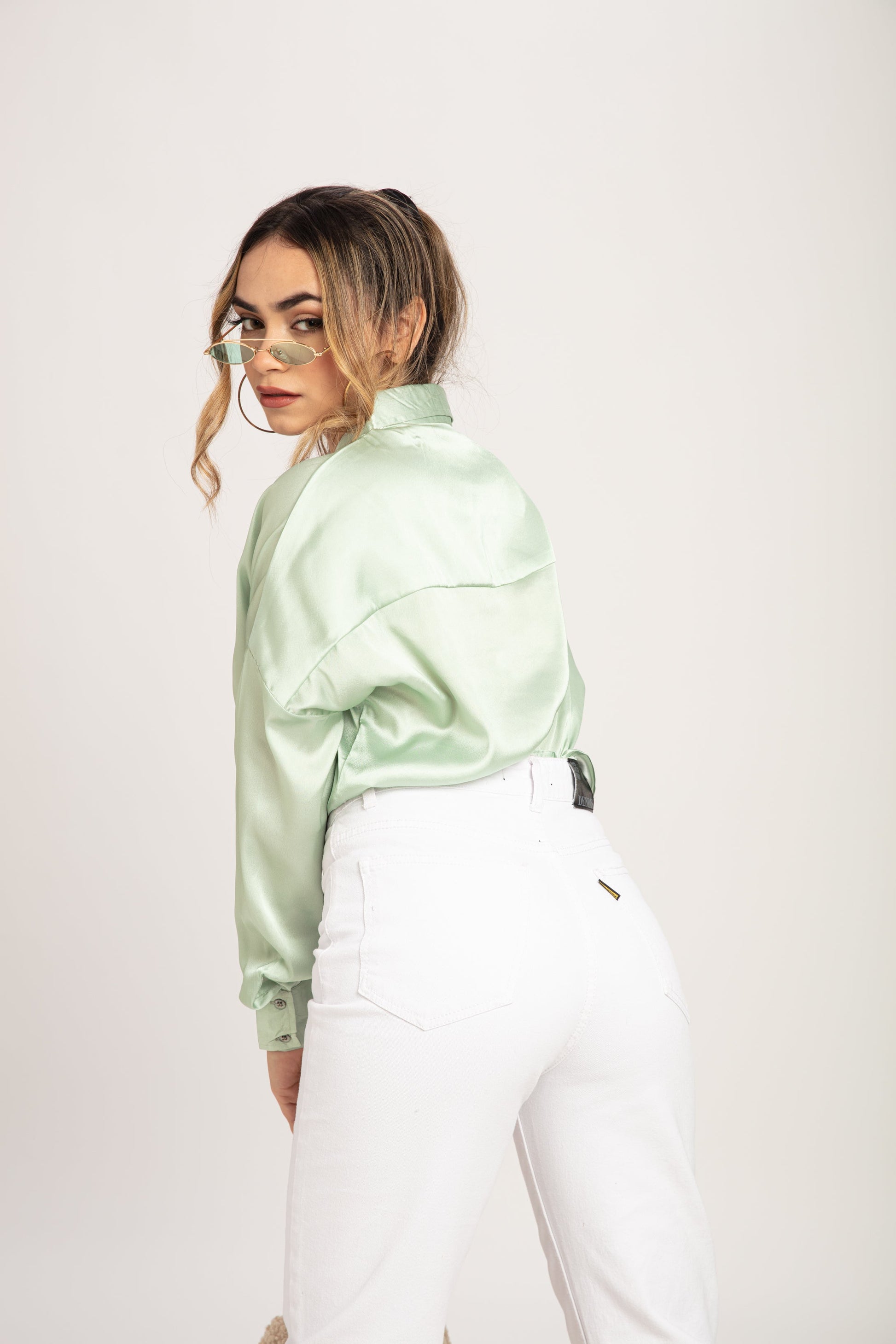 We are obsessing over all things satin right now and this shirt is at the top of our hit-list. Featuring a soft black satin material with button front fastenings with a collar detail and drop shoulder style.