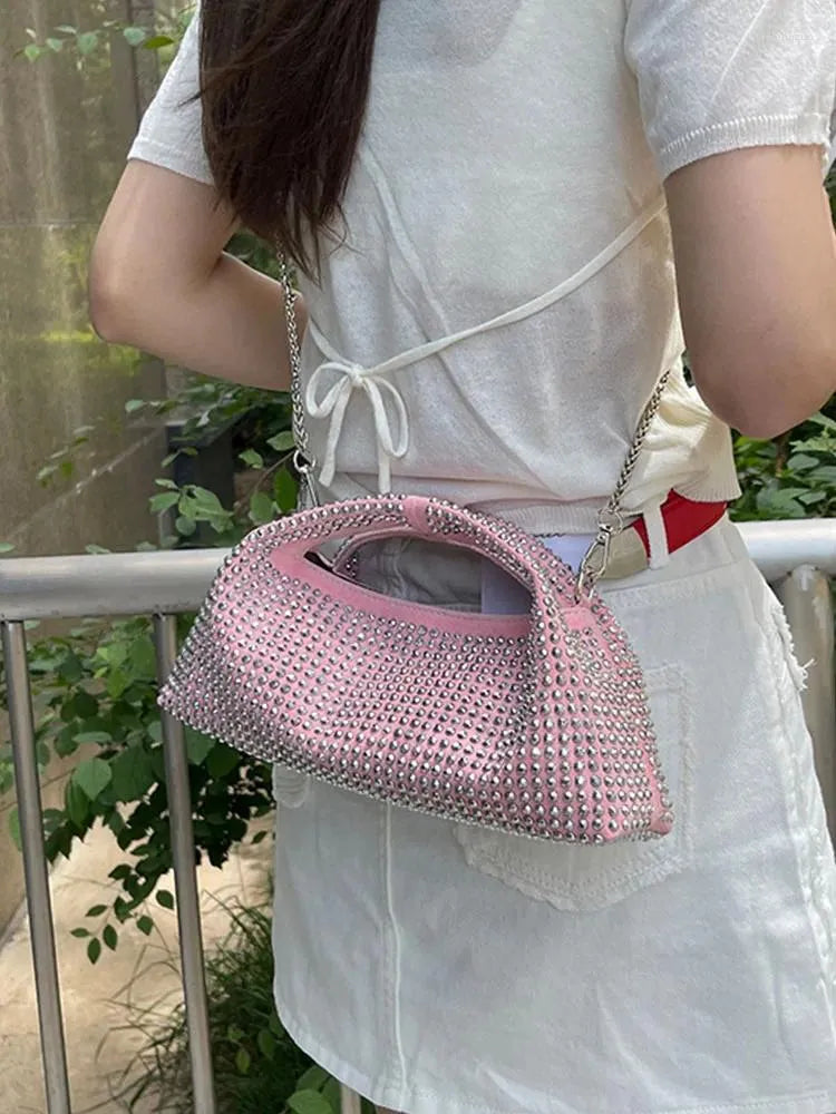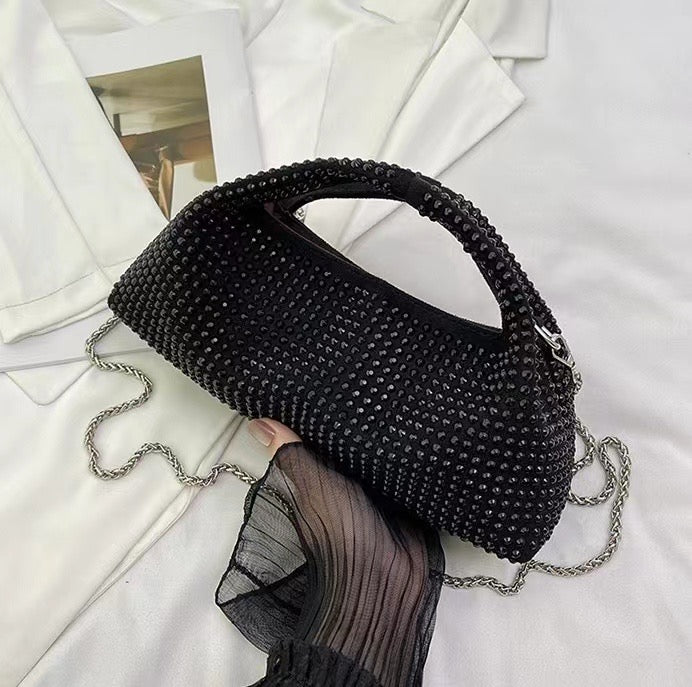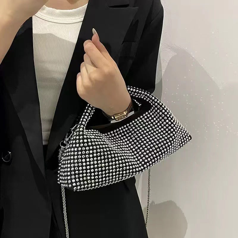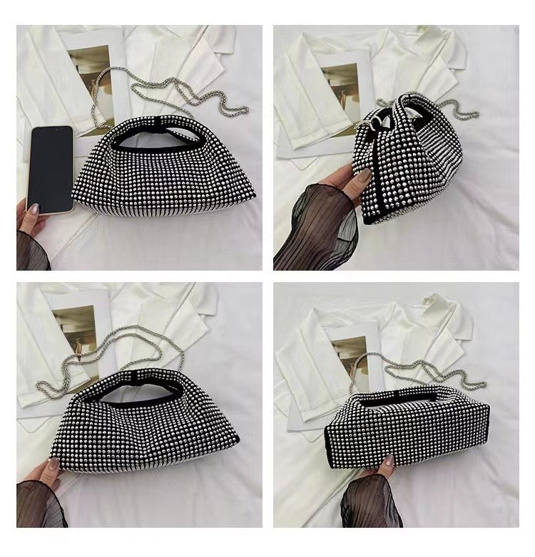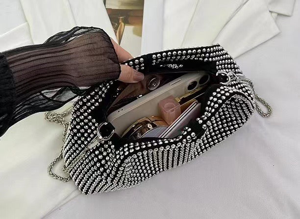 Whether for a special evening out or as a statement accessory for everyday wear, the Evening Blinged Out Handbag is your go-to bag for both practicality and sparkle.