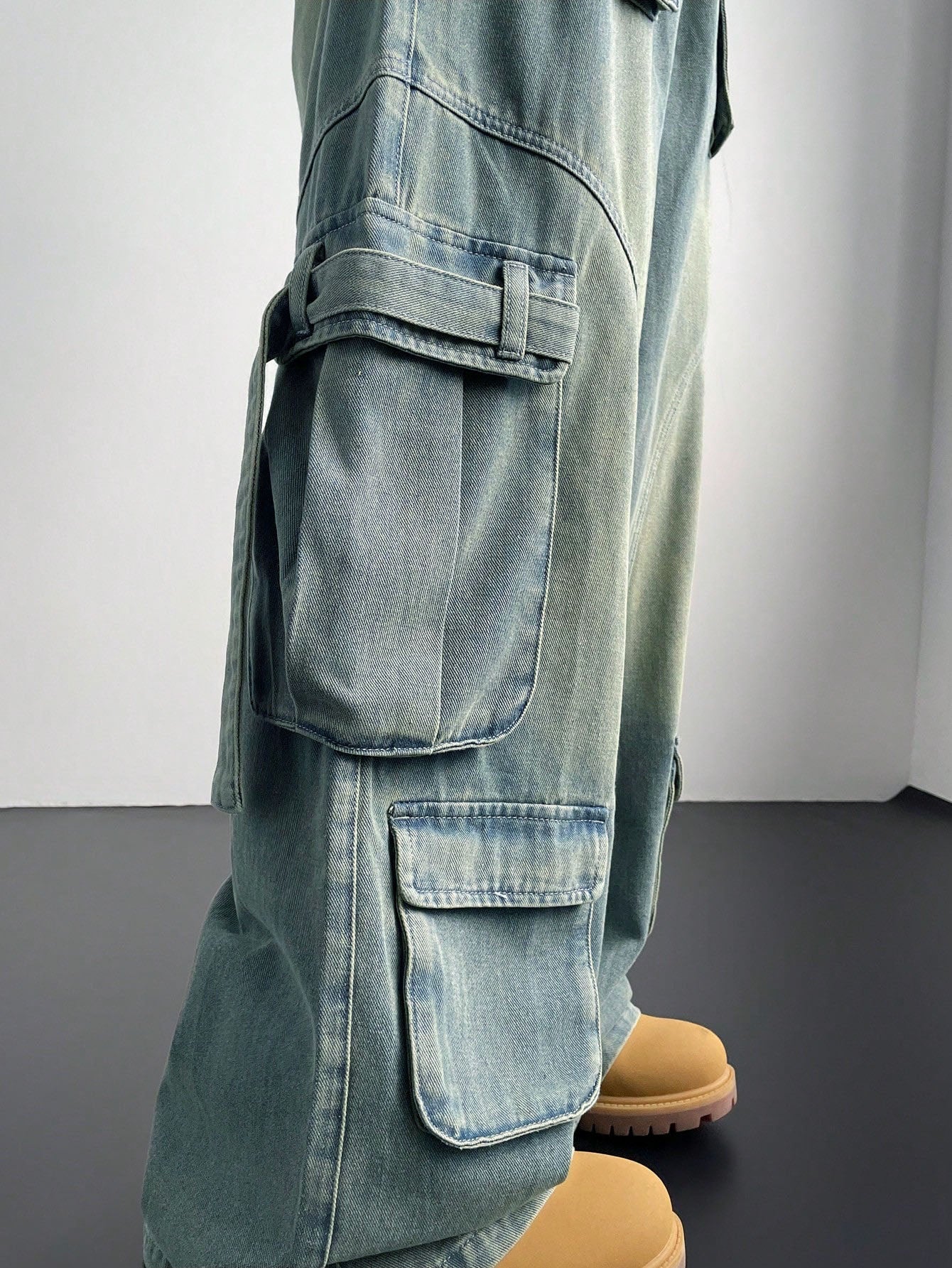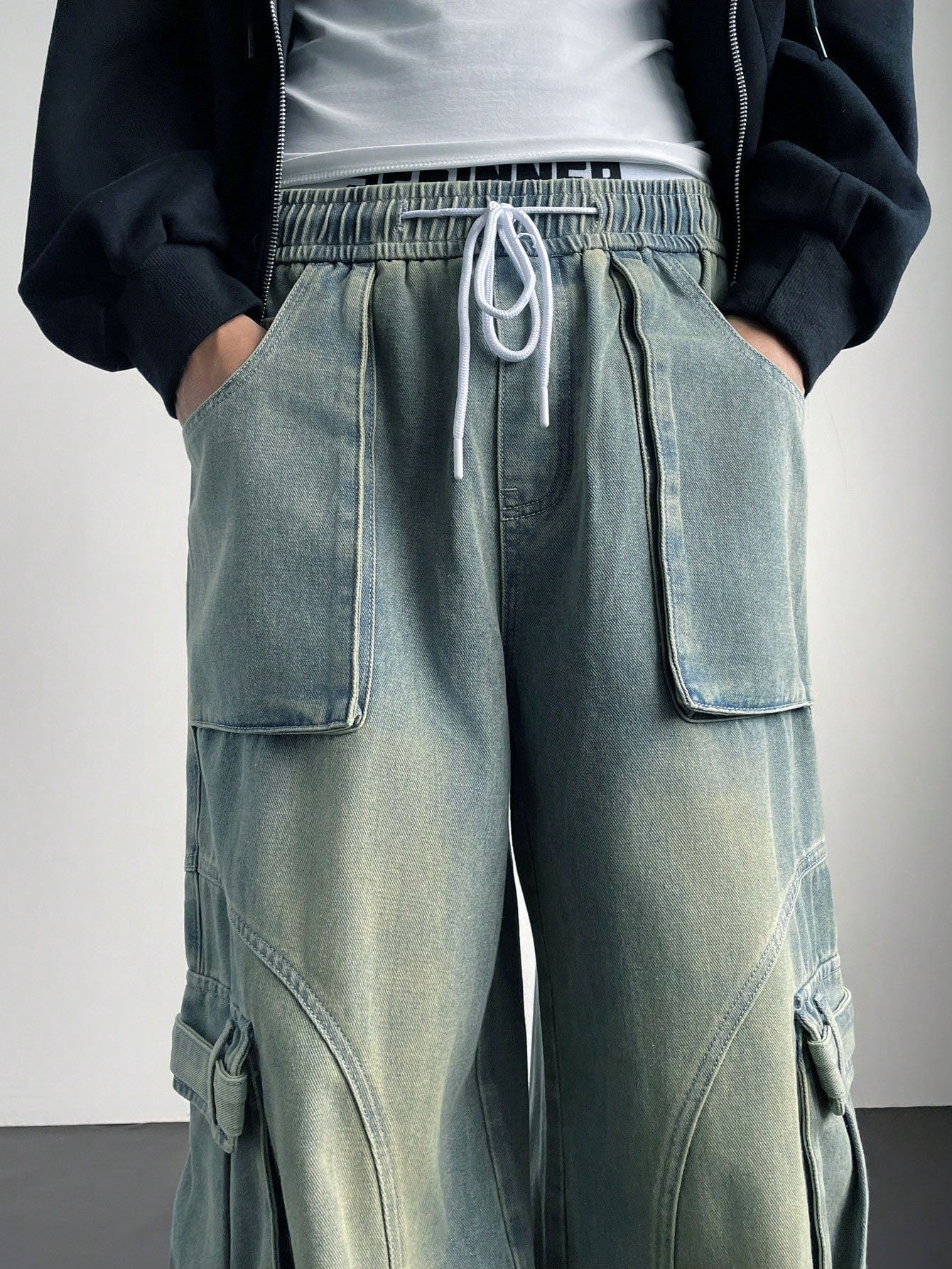 Flex Fit Baggy Wide Leg Cargo Denim Joggers