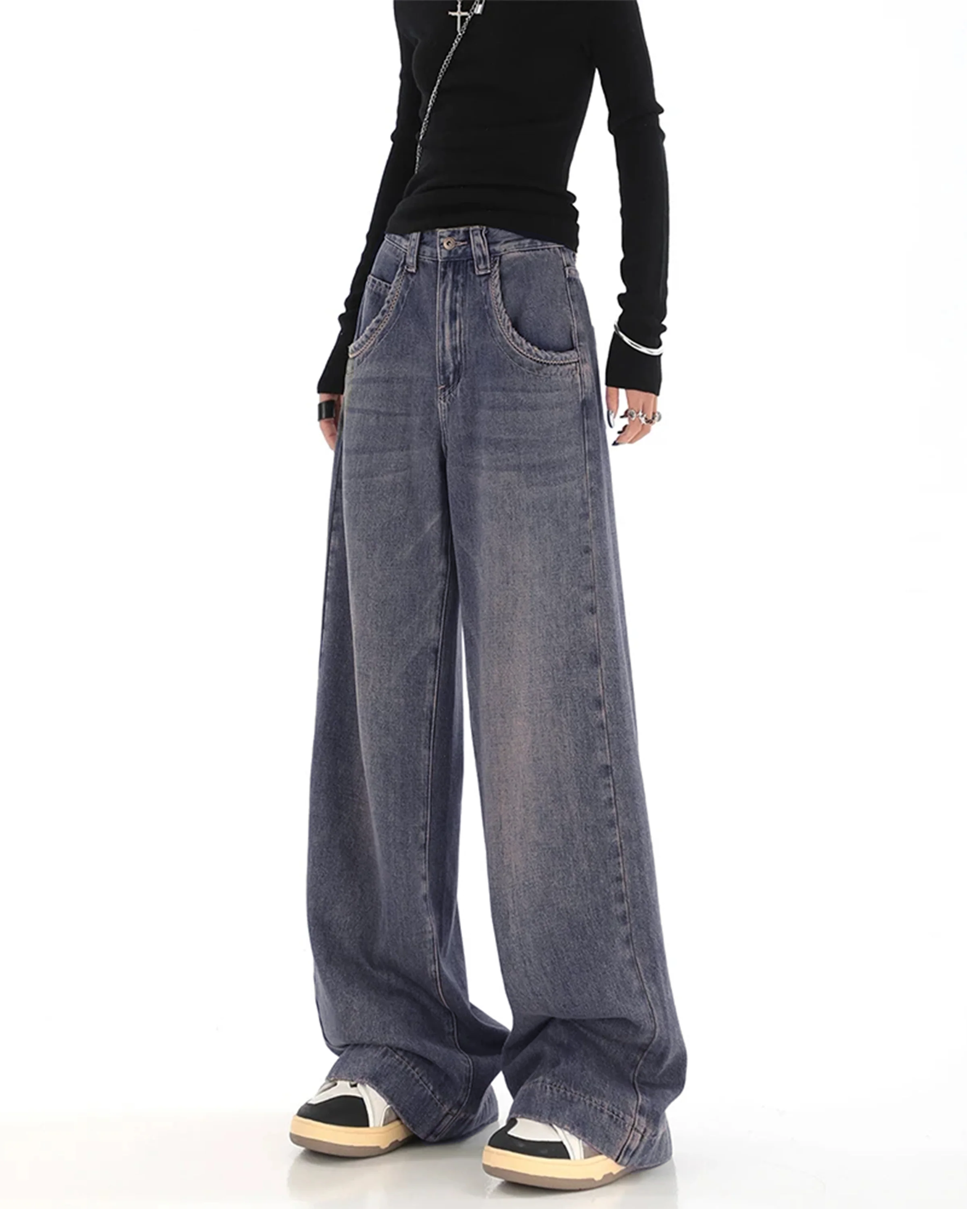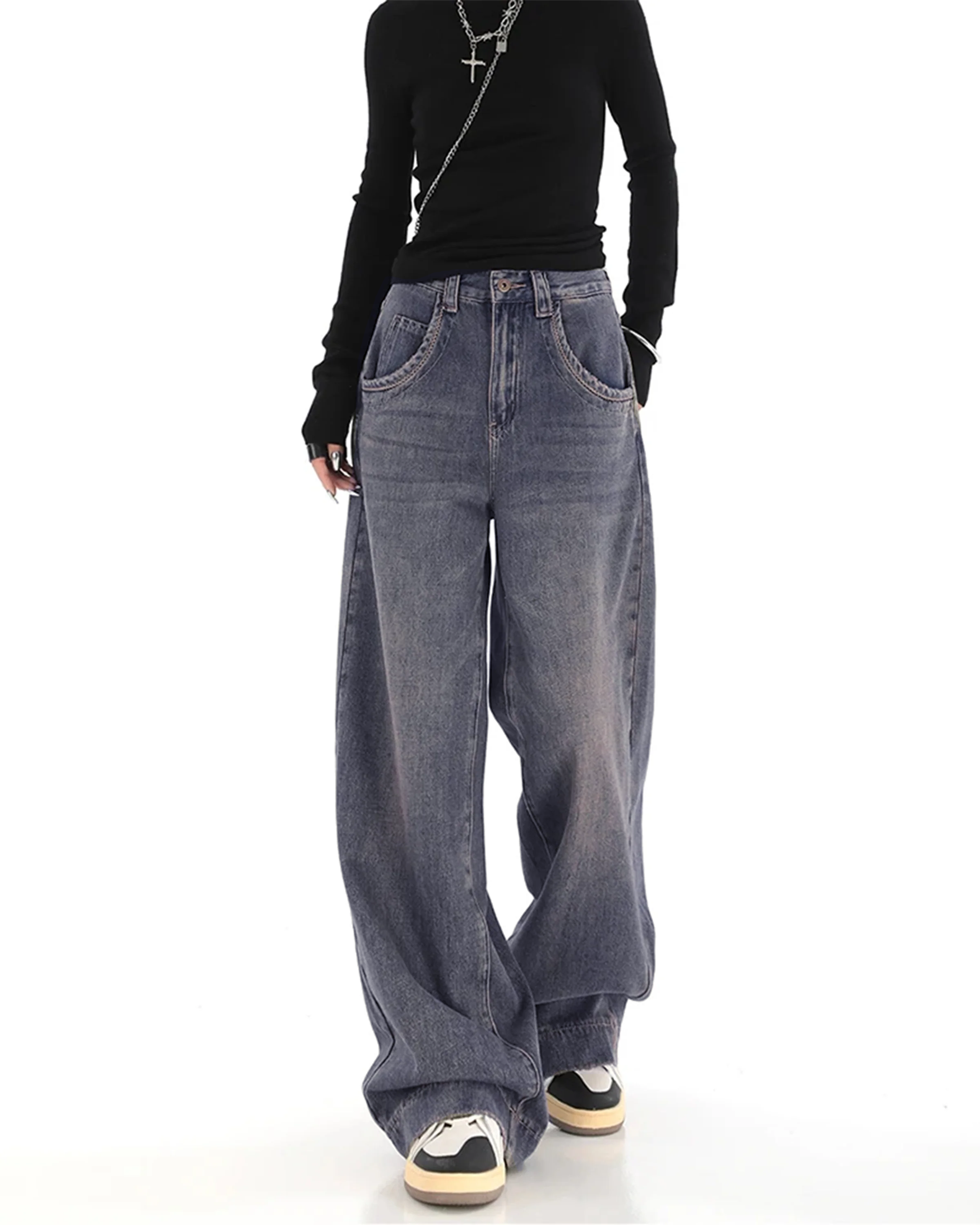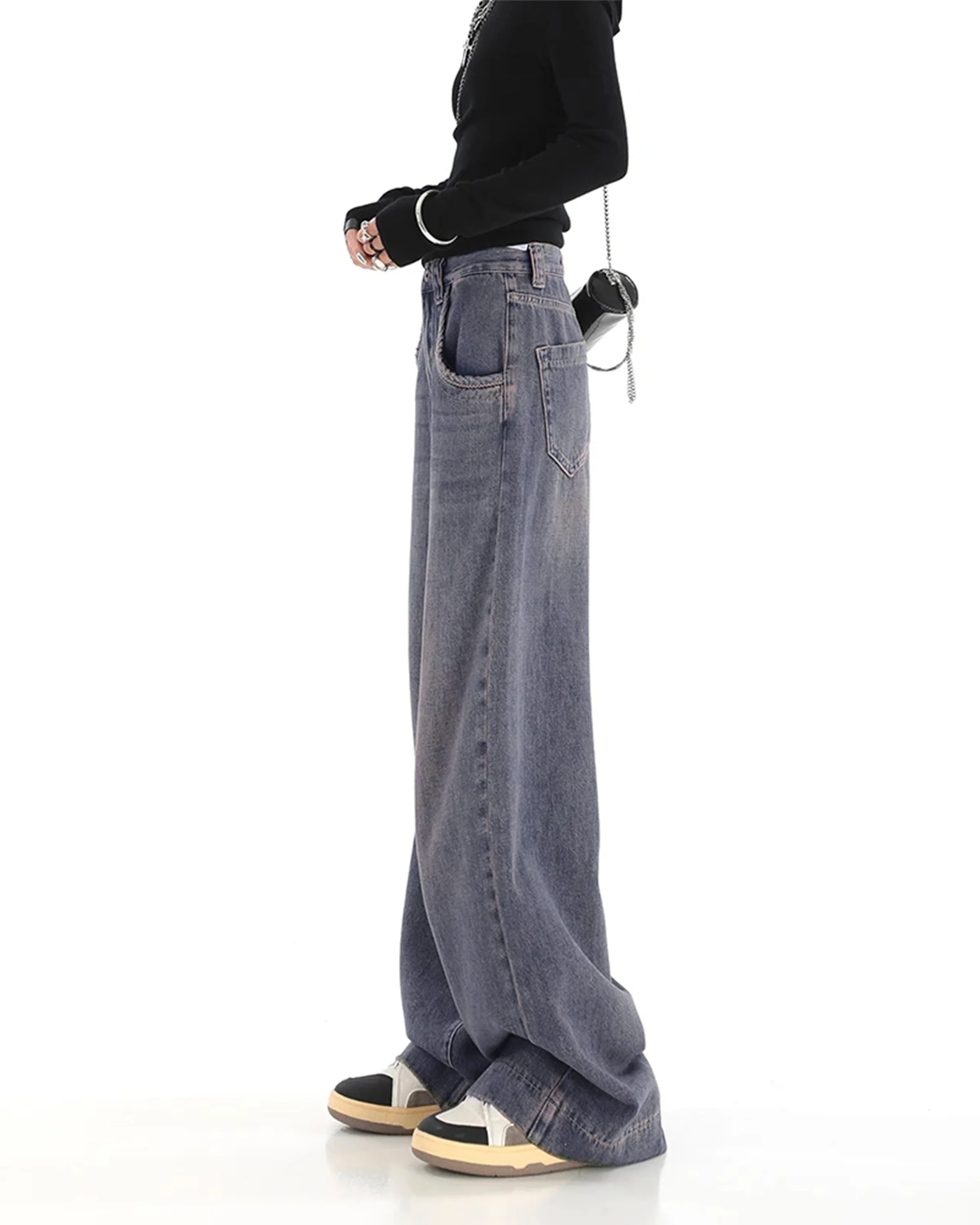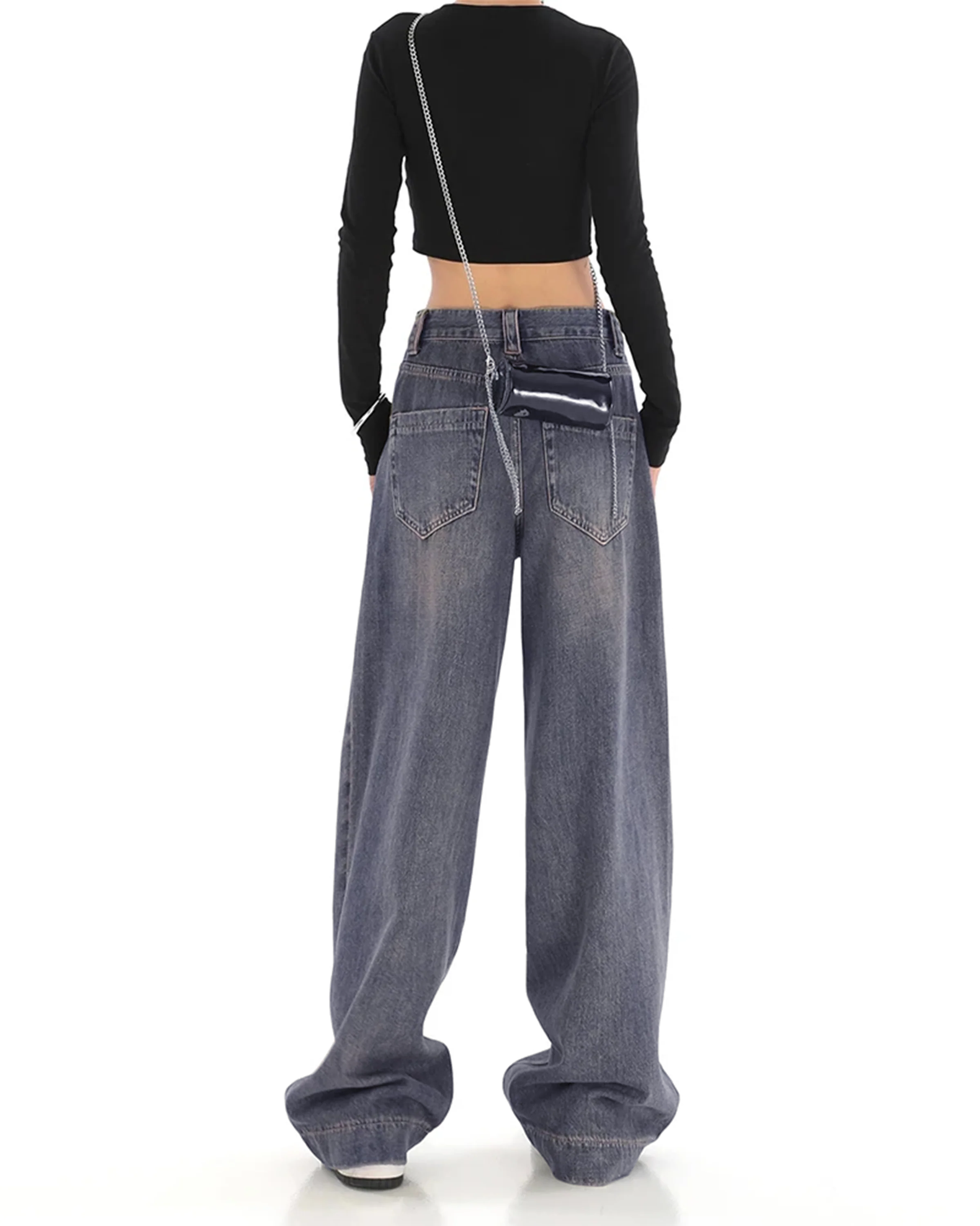 Grey Vintage Washed Wide Leg Baggy Jeans