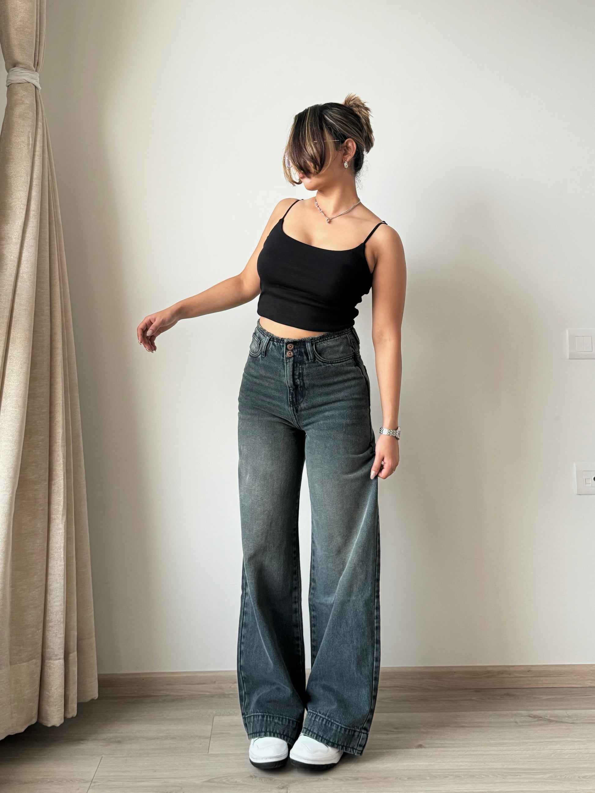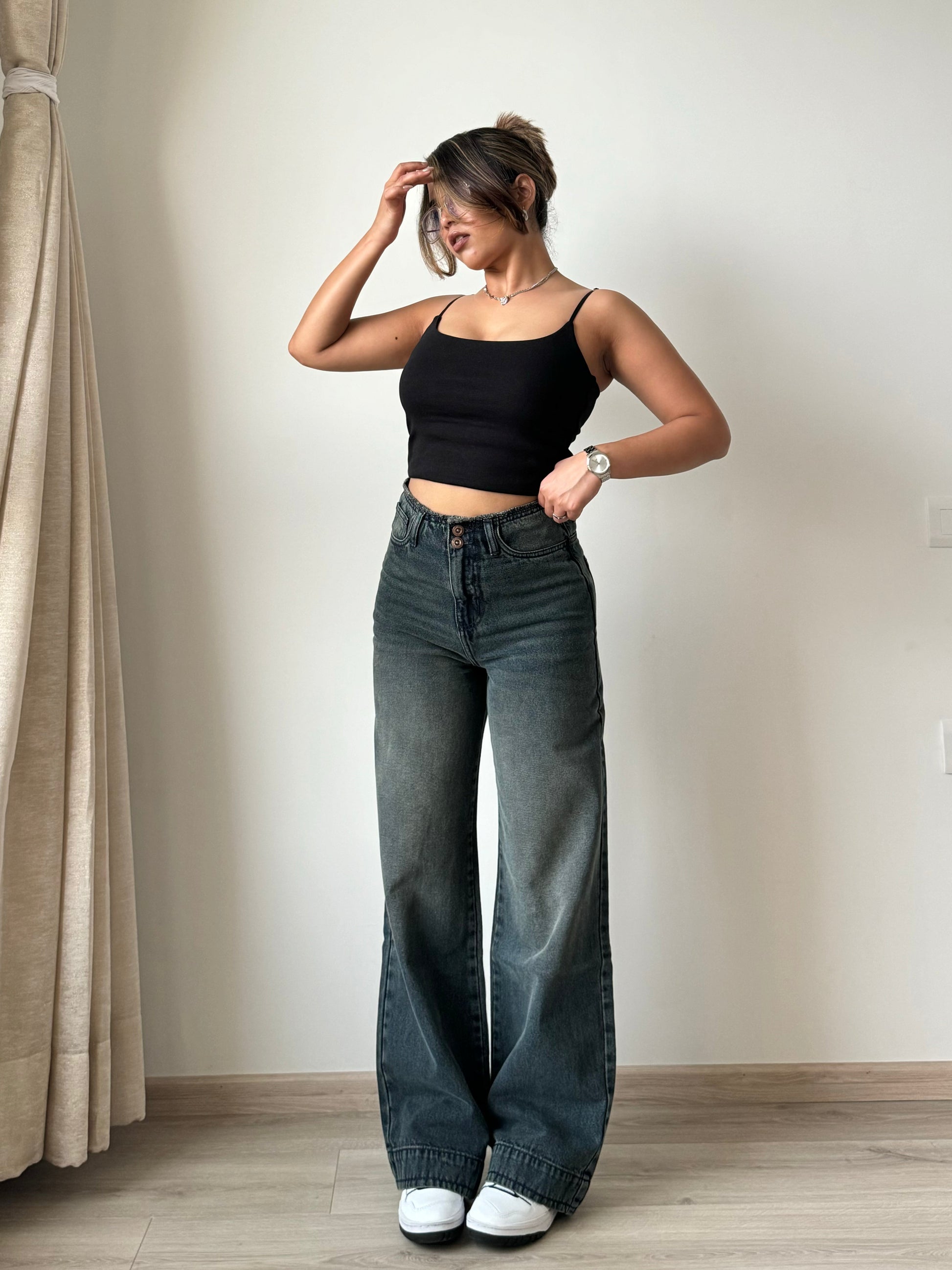 Elevate your wardrobe with our Grunge Edge Double Button High-Waisted Denim. With a sleek and sophisticated design, these jeans feature a high-waisted fit and double button closure for a flattering silhouette. Perfect for adding a touch of luxury to your everyday look