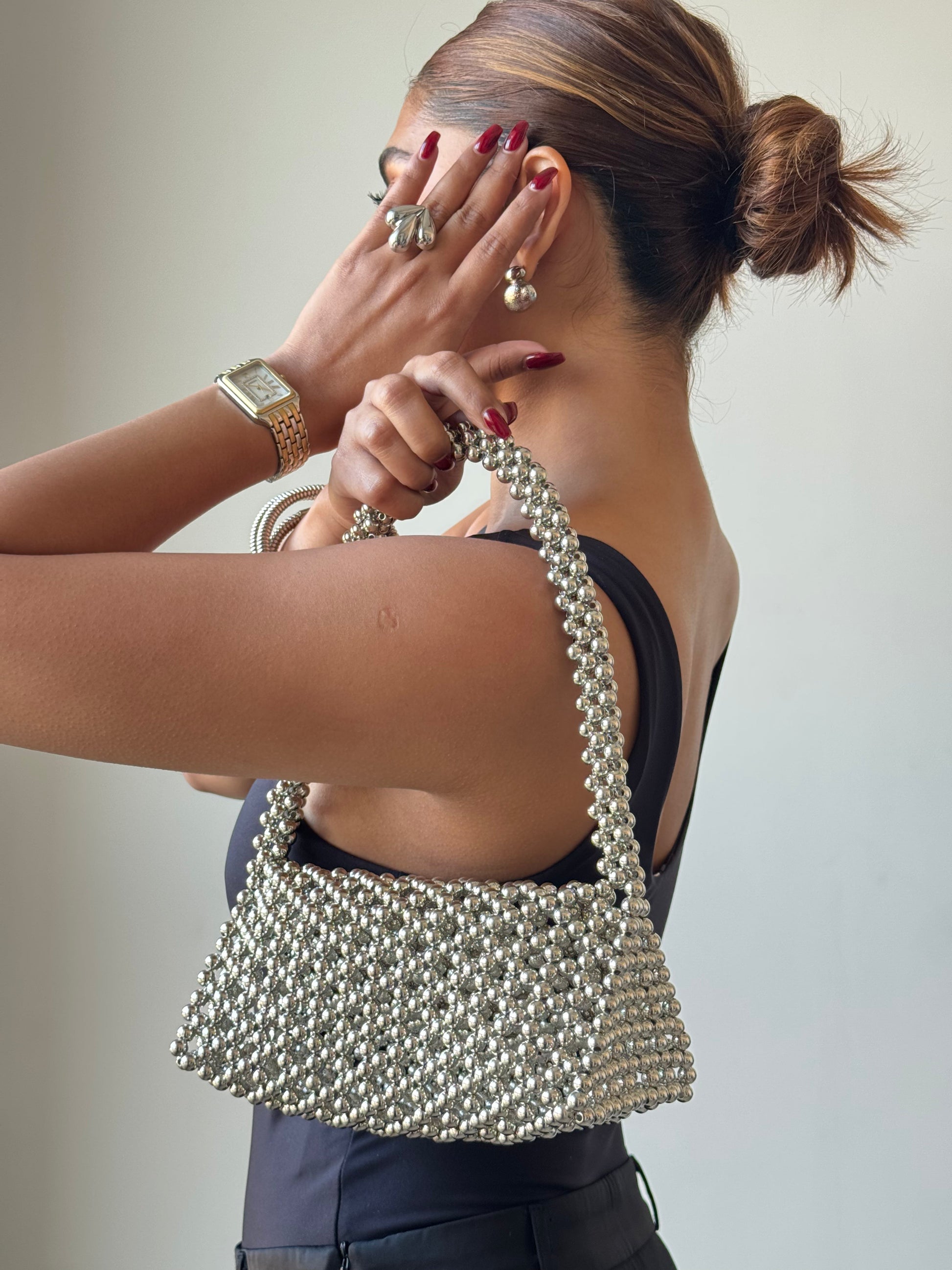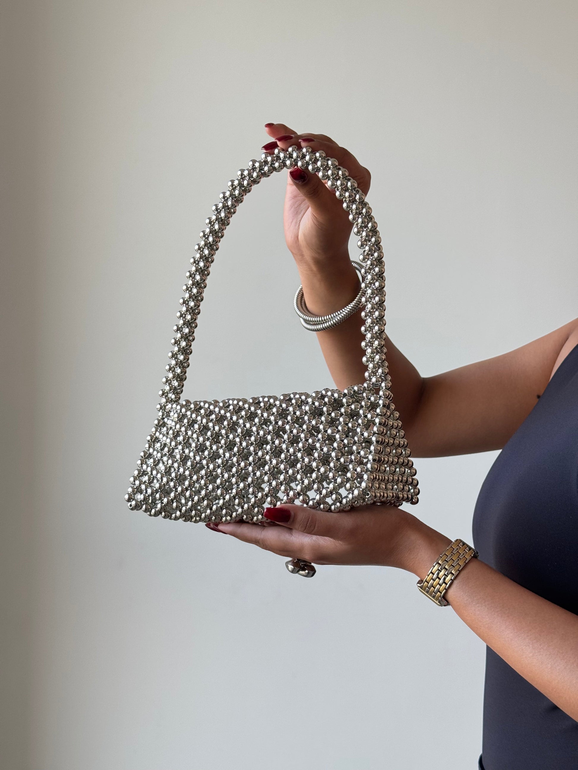 Shine Bright with the Illuminated Glass Stones Hand Bag—a blend of handmade sophistication and chic functionality for every special occasion.