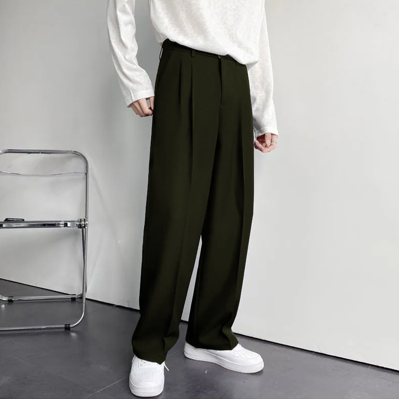 Korean Baggy Loose Fit Pants For Men - Military Green