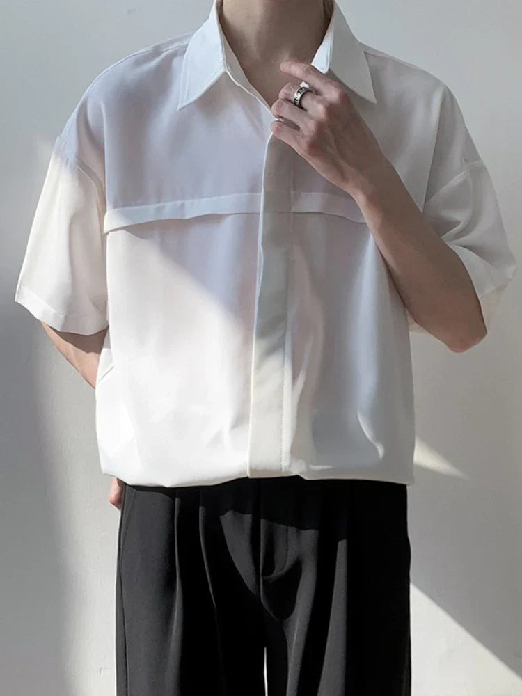 Embrace modern fashion in this Korean-style men's shirt. A drop shoulder and half sleeves provide a casual and comfortable fit. Show off your style with this baggy and stylish shirt.