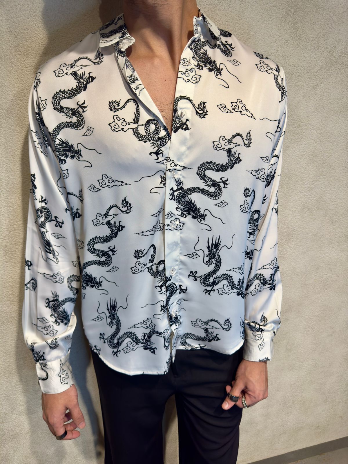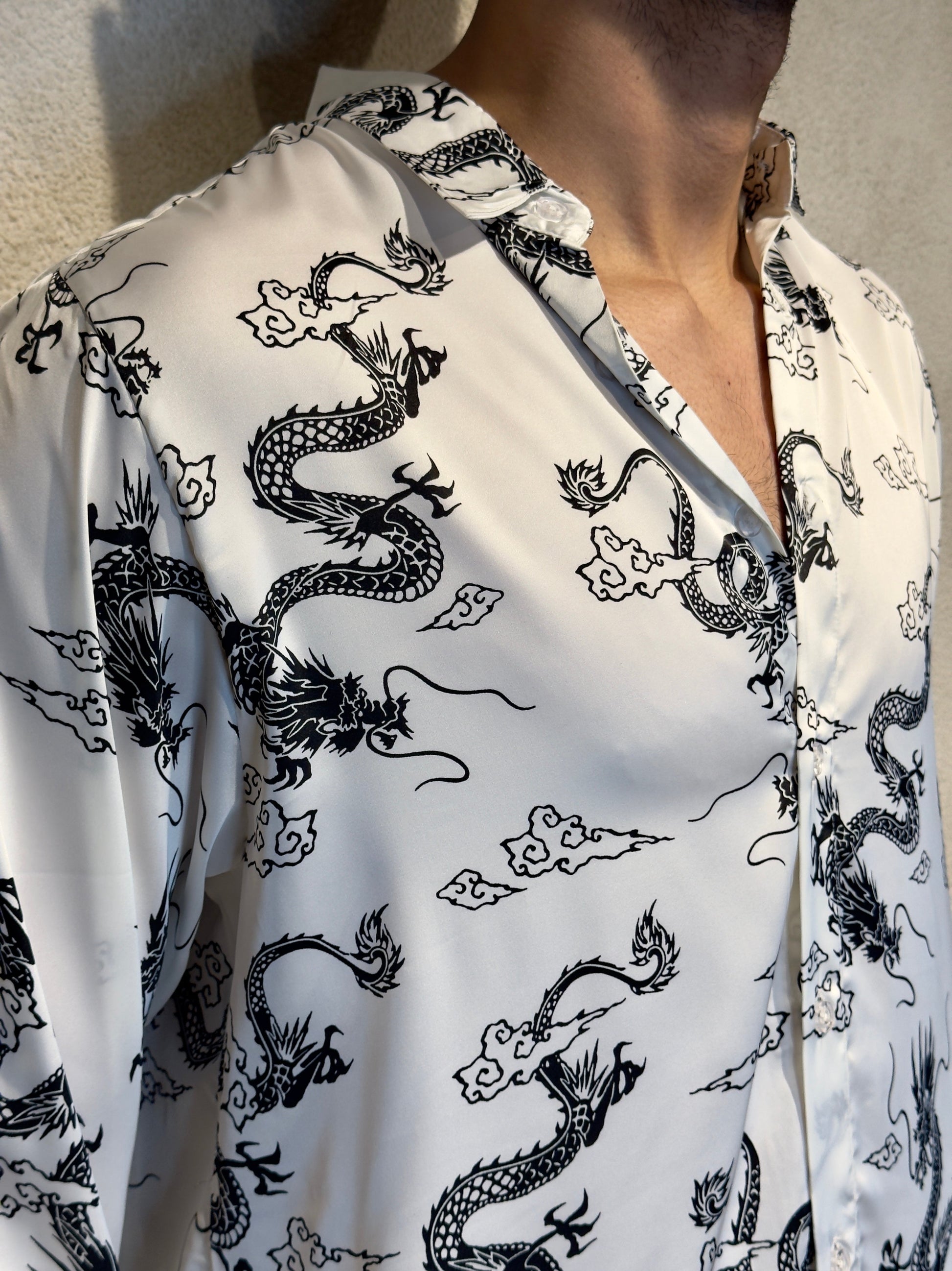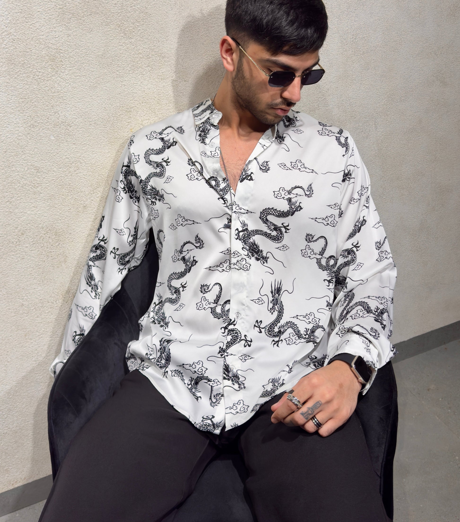 Channel bold energy and mystique with the Mystic Dragon Print Full Sleeves Shirt. Featuring an eye-catching dragon design, this shirt is perfect for those who want to add a touch of the mythical to their wardrobe.
