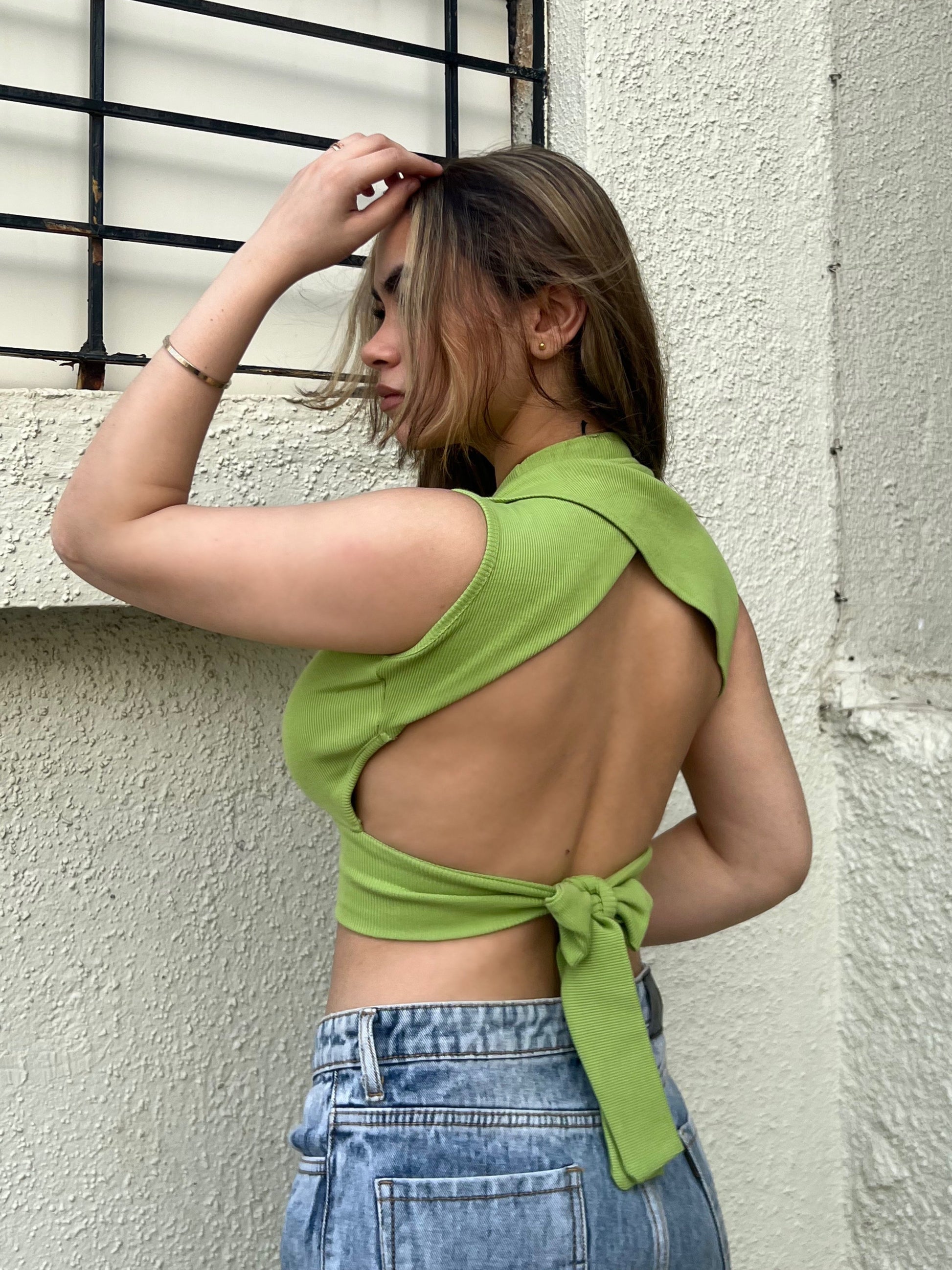 This Open Back Halter Top With Back Tie is perfect for any occasion! Its flattering neckline can be paired with a skirt, shorts, or trousers to create a unique look. The back tie allows you to customize the fit for a comfortable and stylish look.