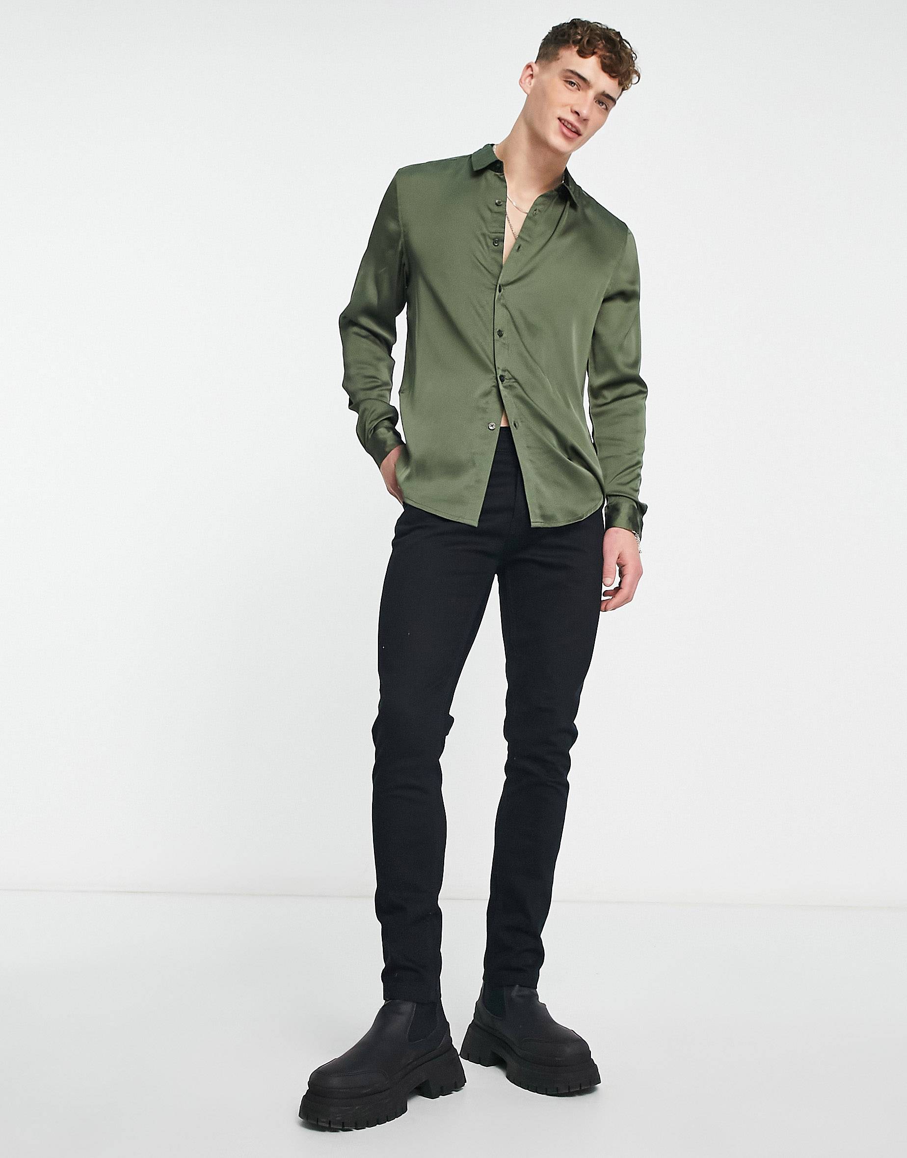 The Party Button Up Satin Shirt is the perfect choice for special occasions. Its striking silhouette features a front button closure, long sleeves, and a slim fit. Its luxurious satin fabric will make you look and feel your best. Create an unforgettable look with this party shirt.