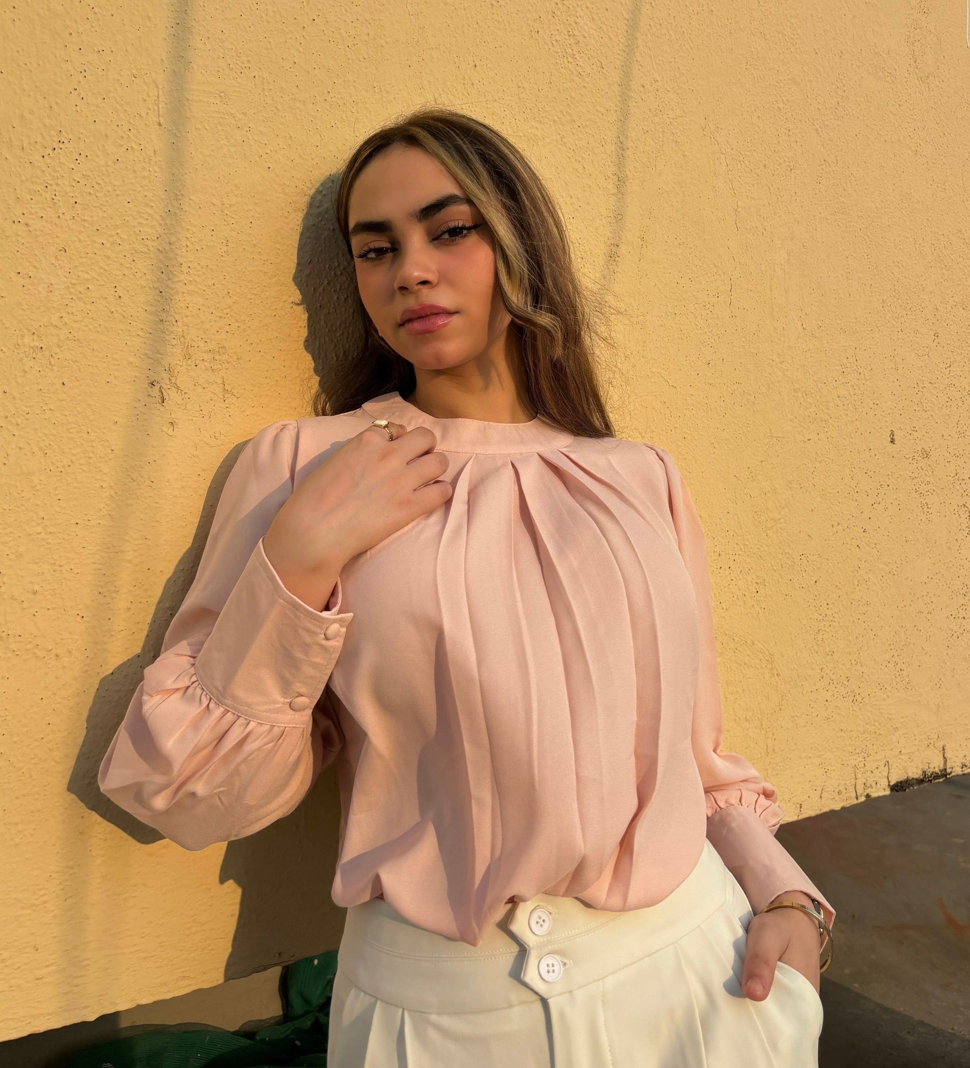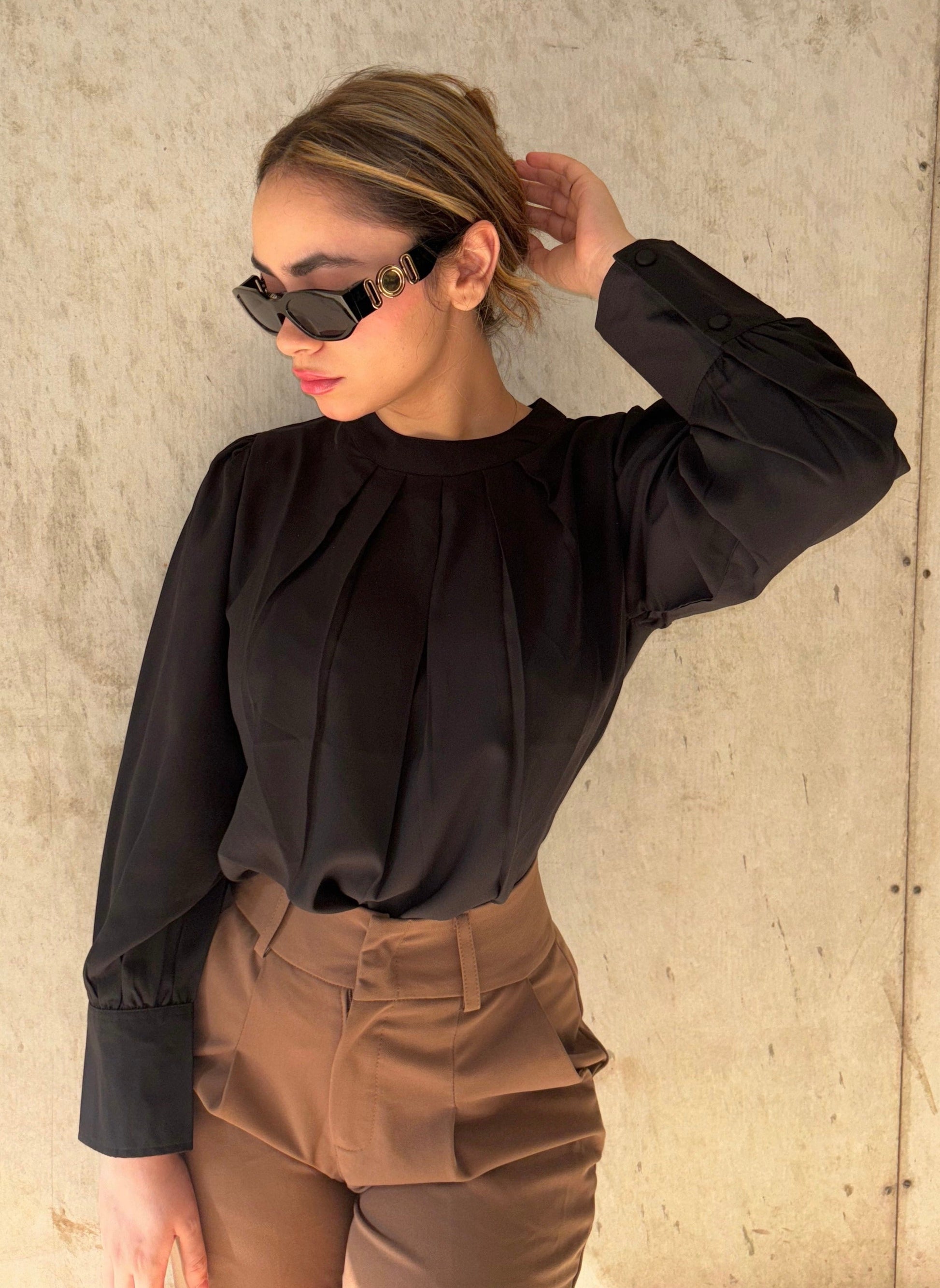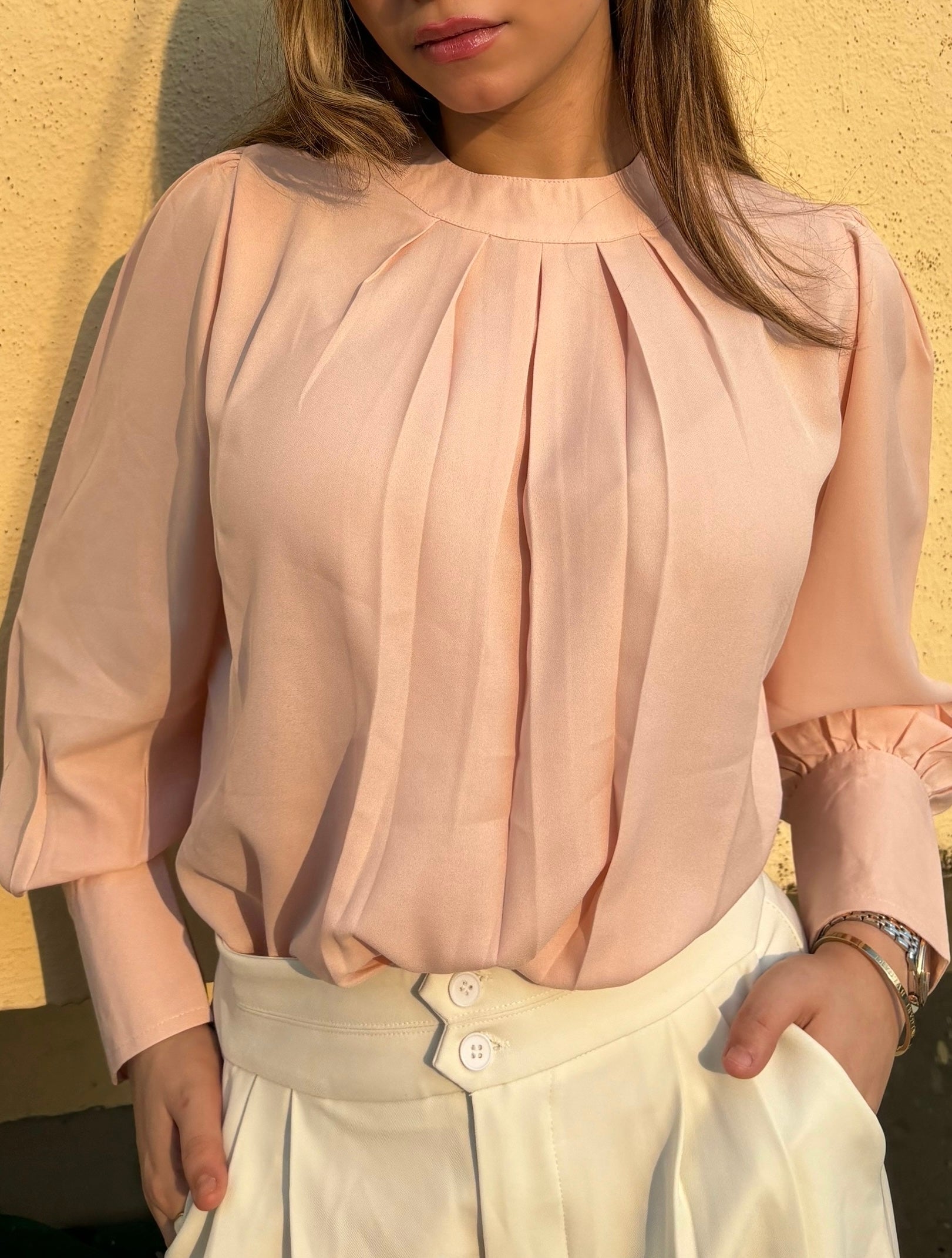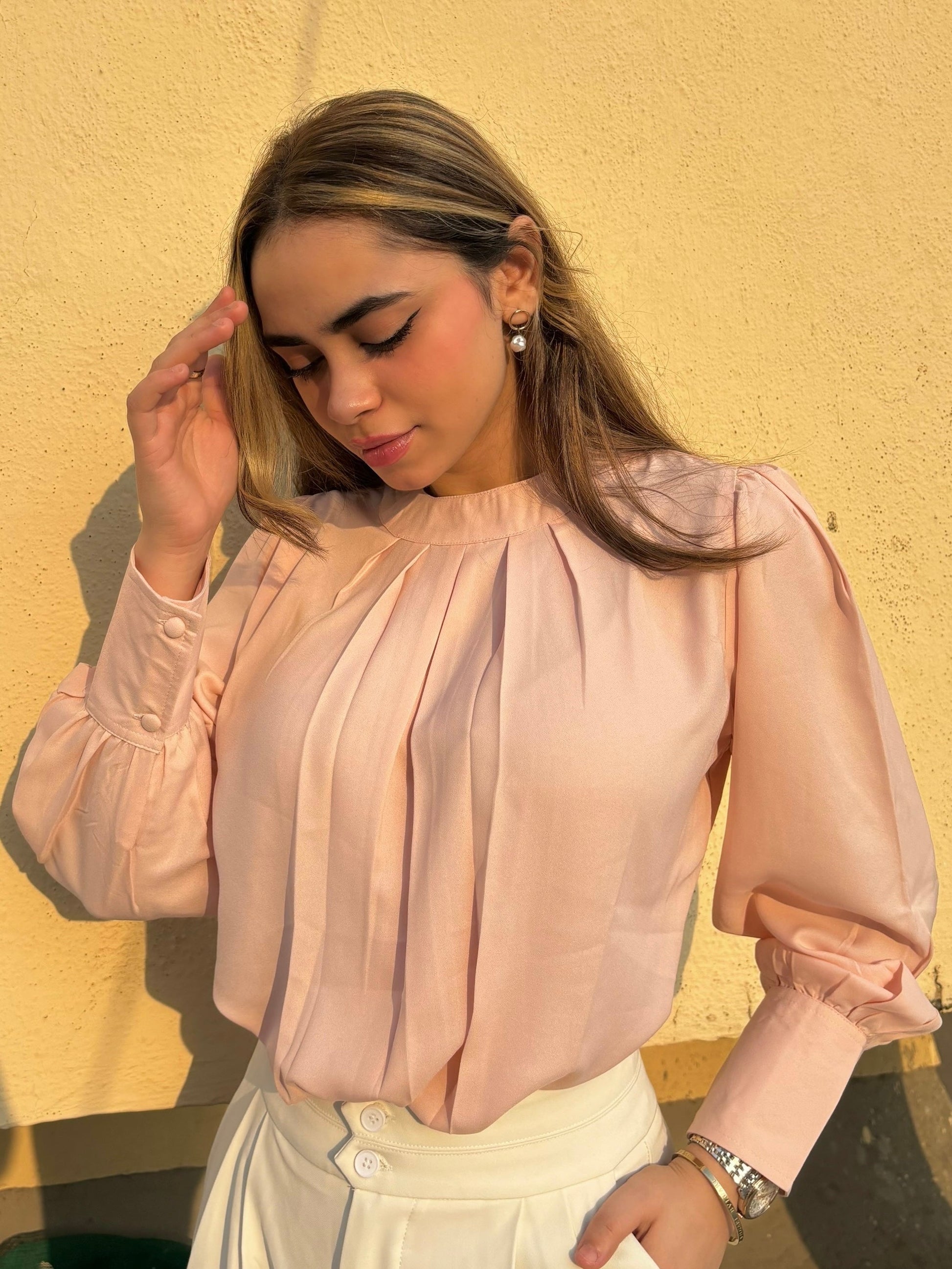 This Pleated Neck Bishop Sleeve Blouse is the romantic addition your wardrobe needs! The subtle pleats create a subtle statement while its bishop sleeves will make you the queen of any event. Love your look and stand out in this stylish top!