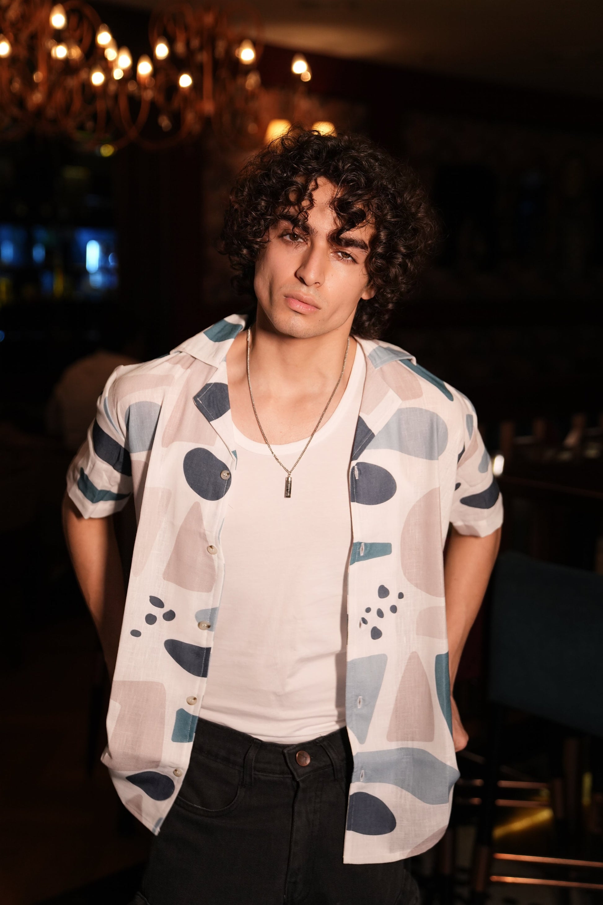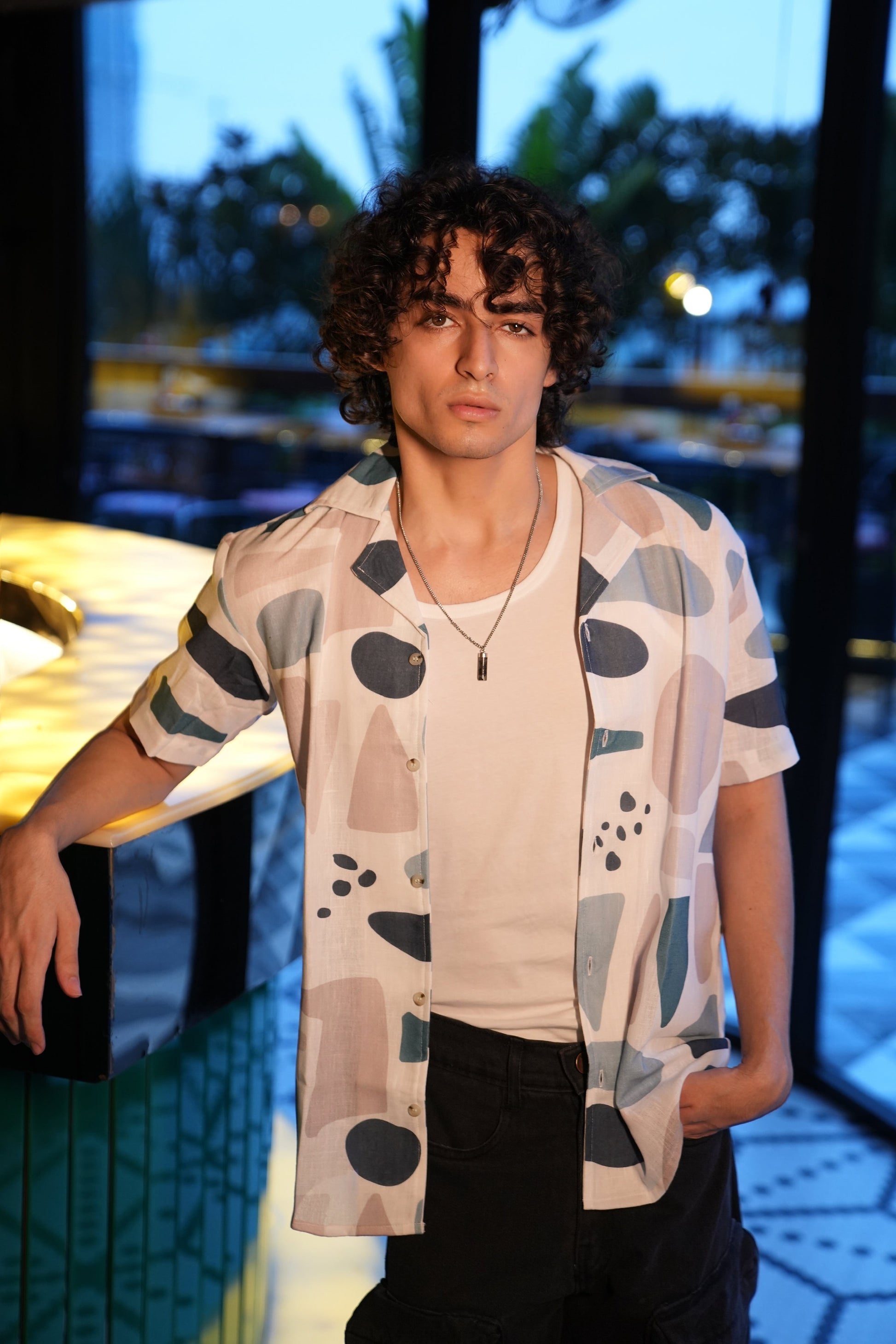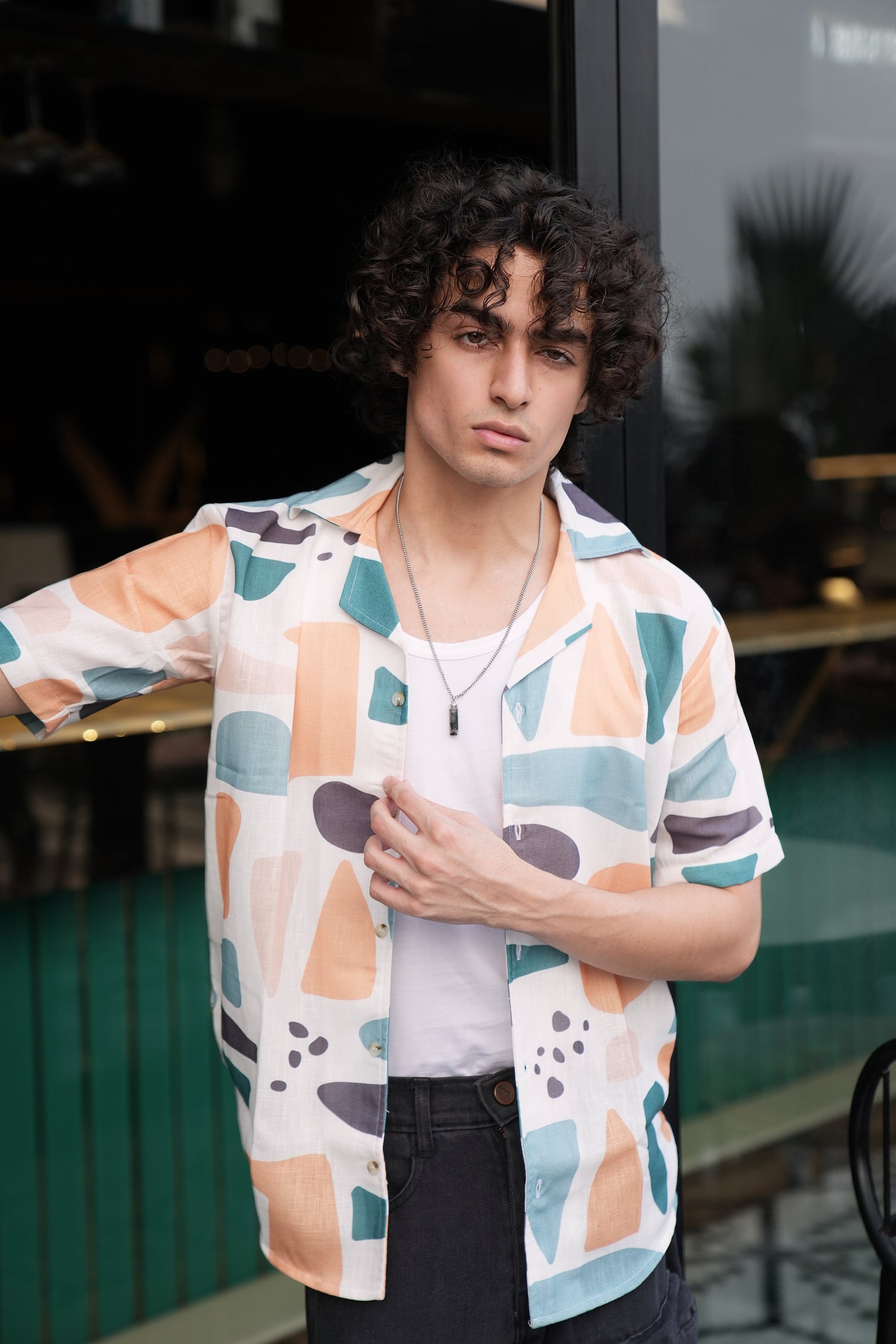 Premium Geometric Print Linen Shirt