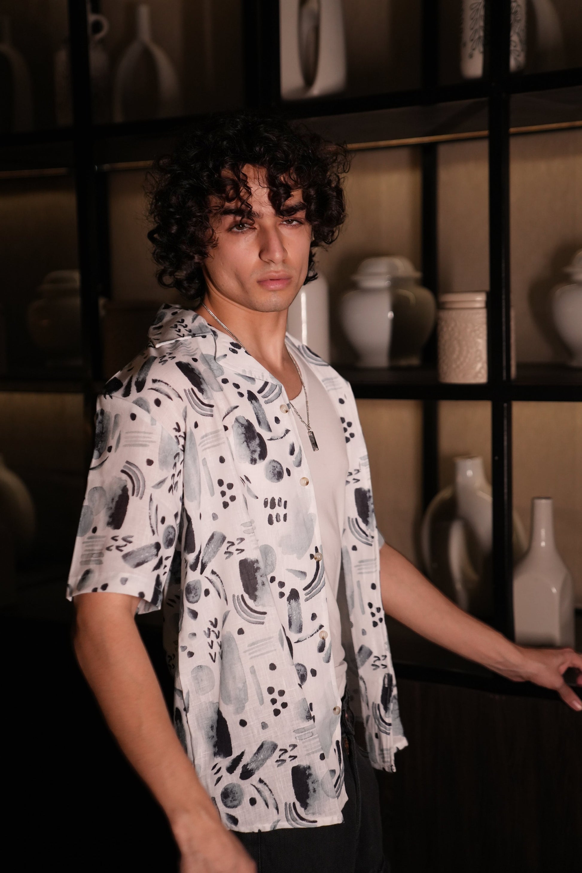 Expertly crafted from premium linen, this shirt features a stunning watercolor splash print that adds a touch of artistic elegance to your wardrobe. The lightweight, breathable fabric ensures comfort and style, making it the perfect choice for any occasion. Elevate your look with this premium shirt.