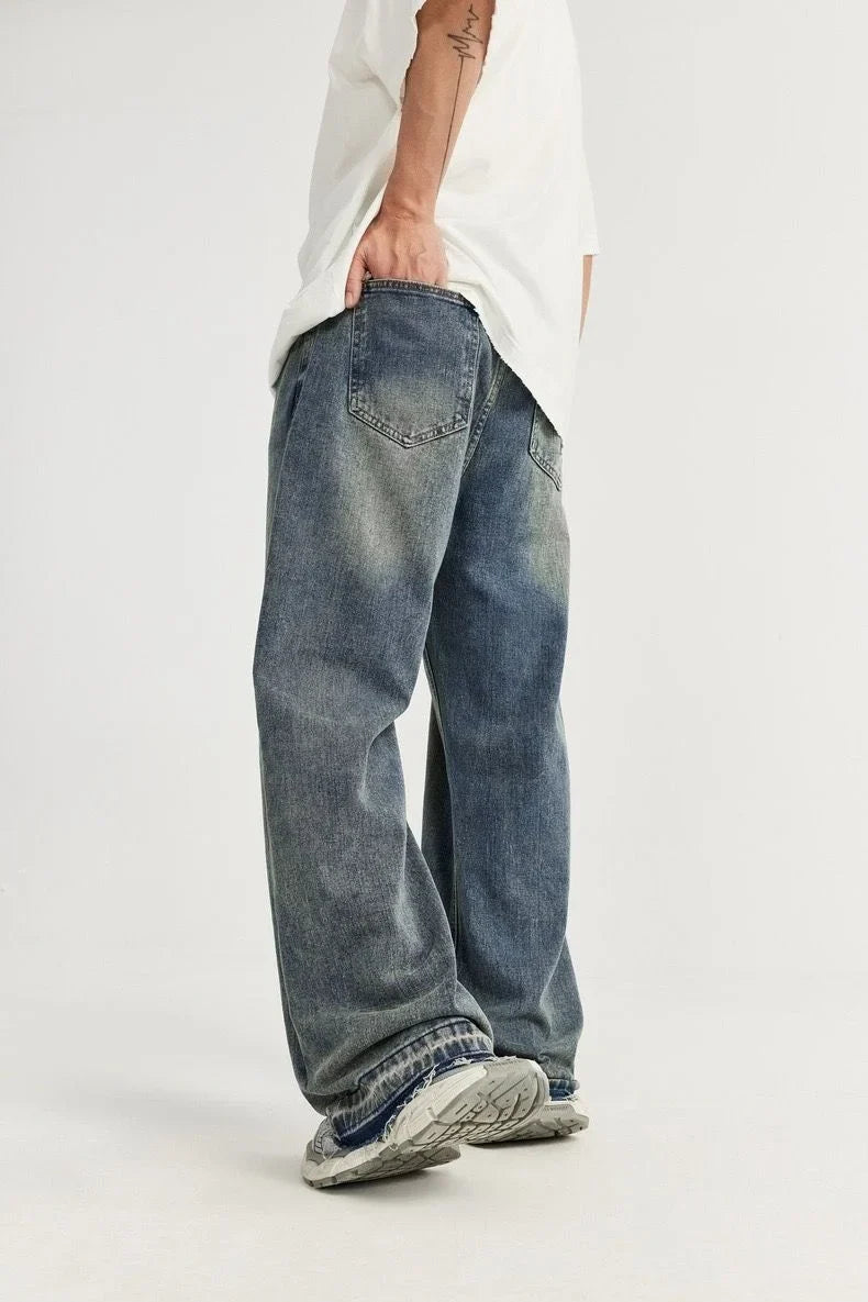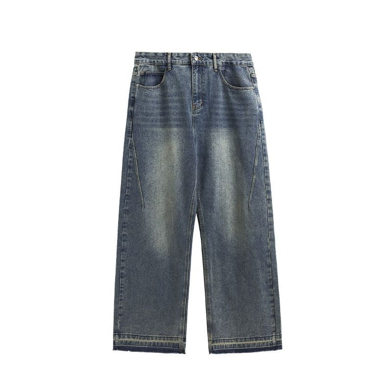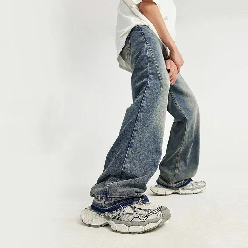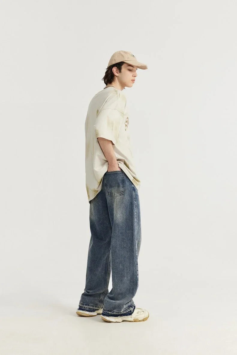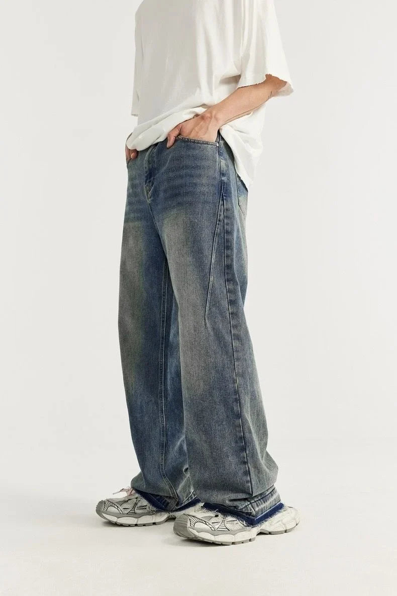 Raw Fringed Washed Baggy Jeans