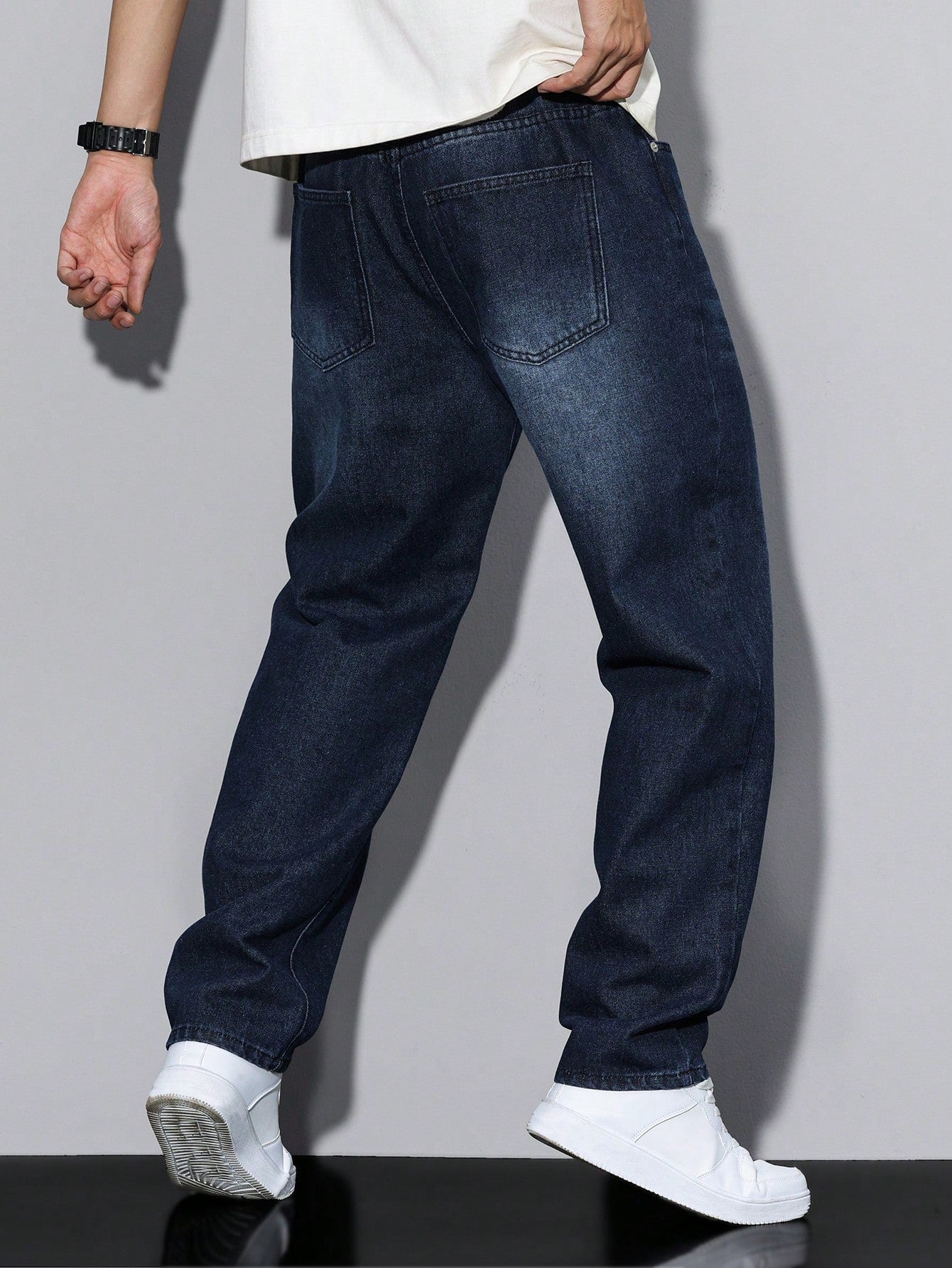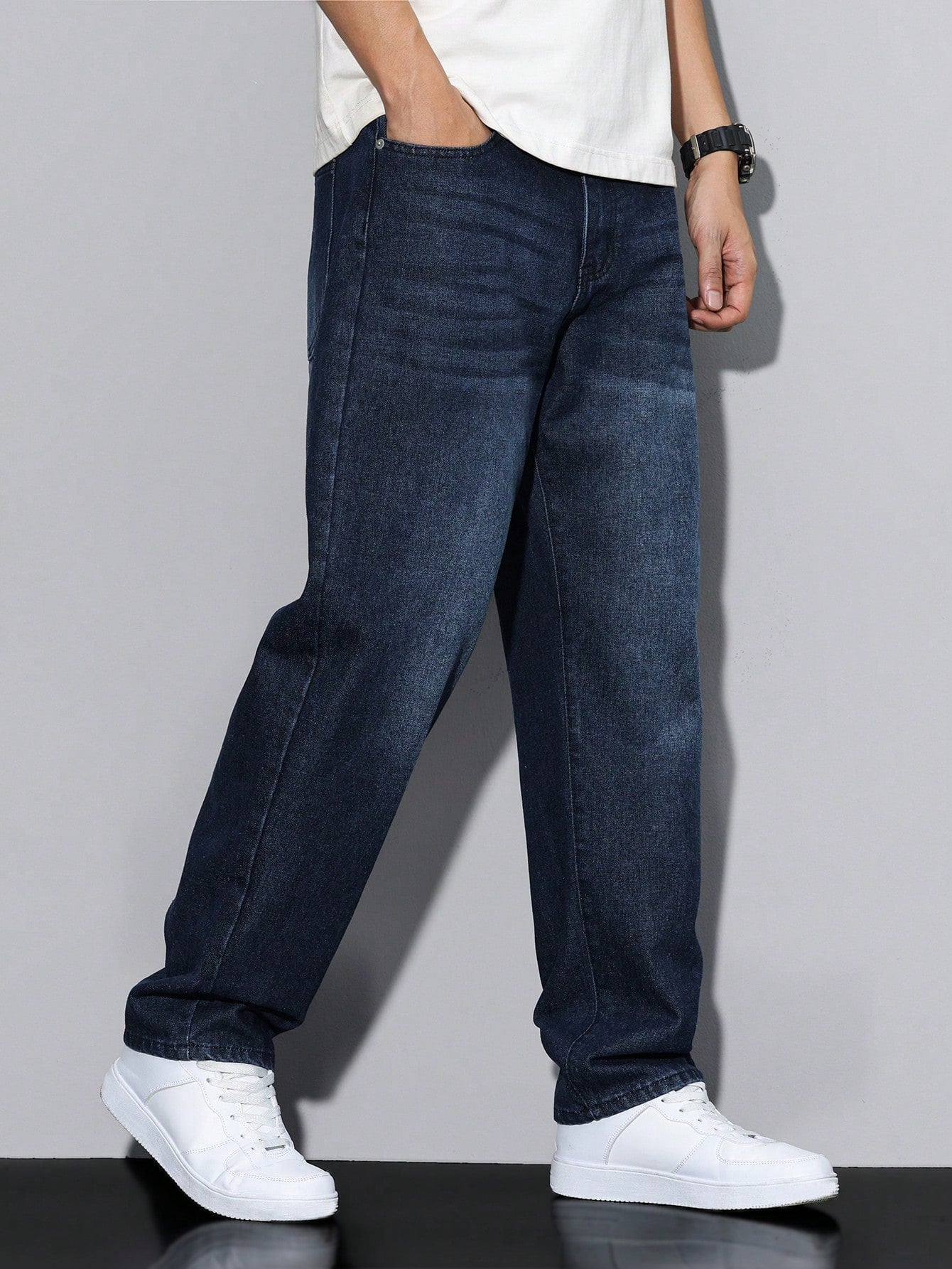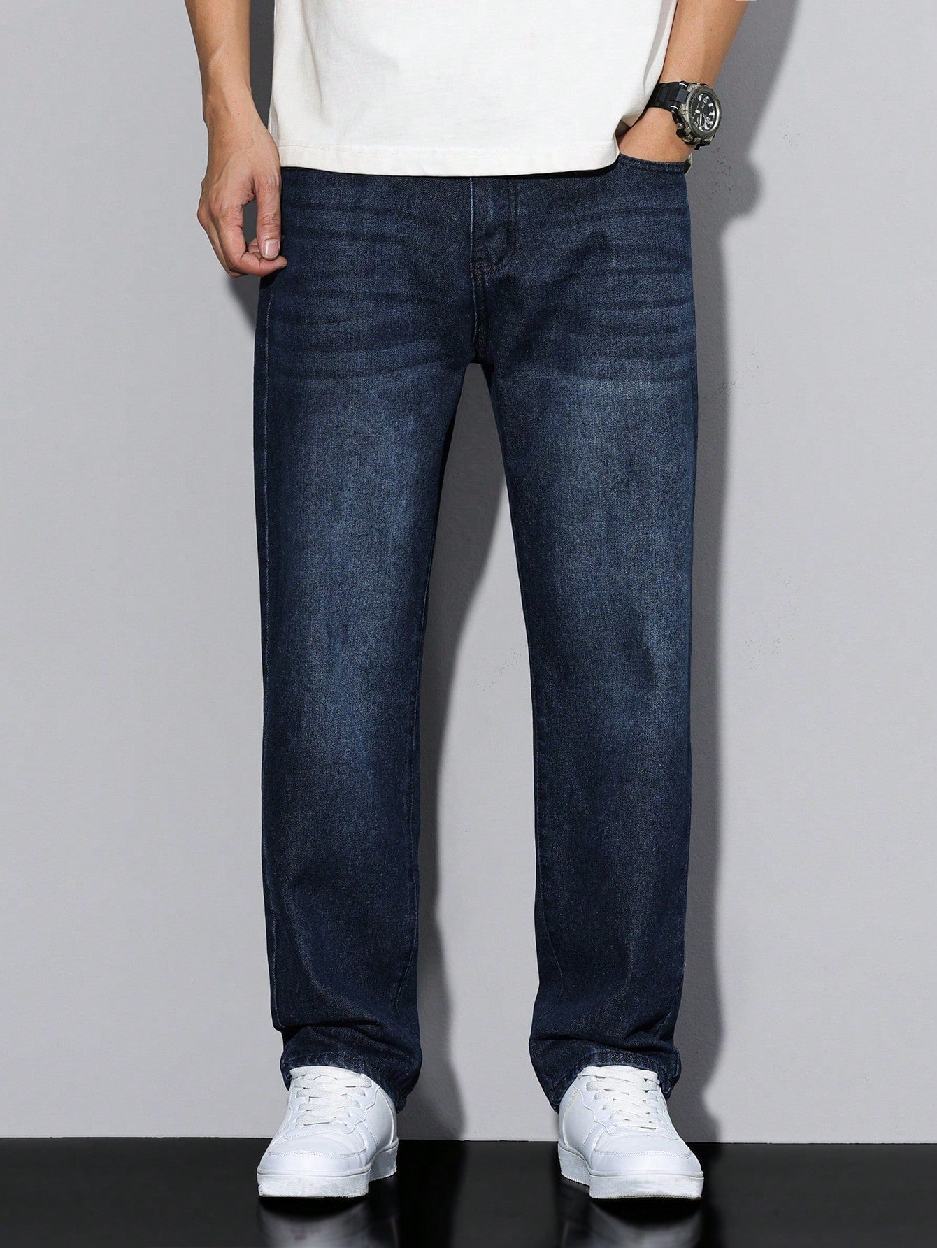 These Dark Indigo Straight-Leg Jeans deliver timeless style in a modern, relaxed cut.  The deep indigo wash with subtle fading at the thighs adds dimension, making them perfect for casual or smart-casual looks.