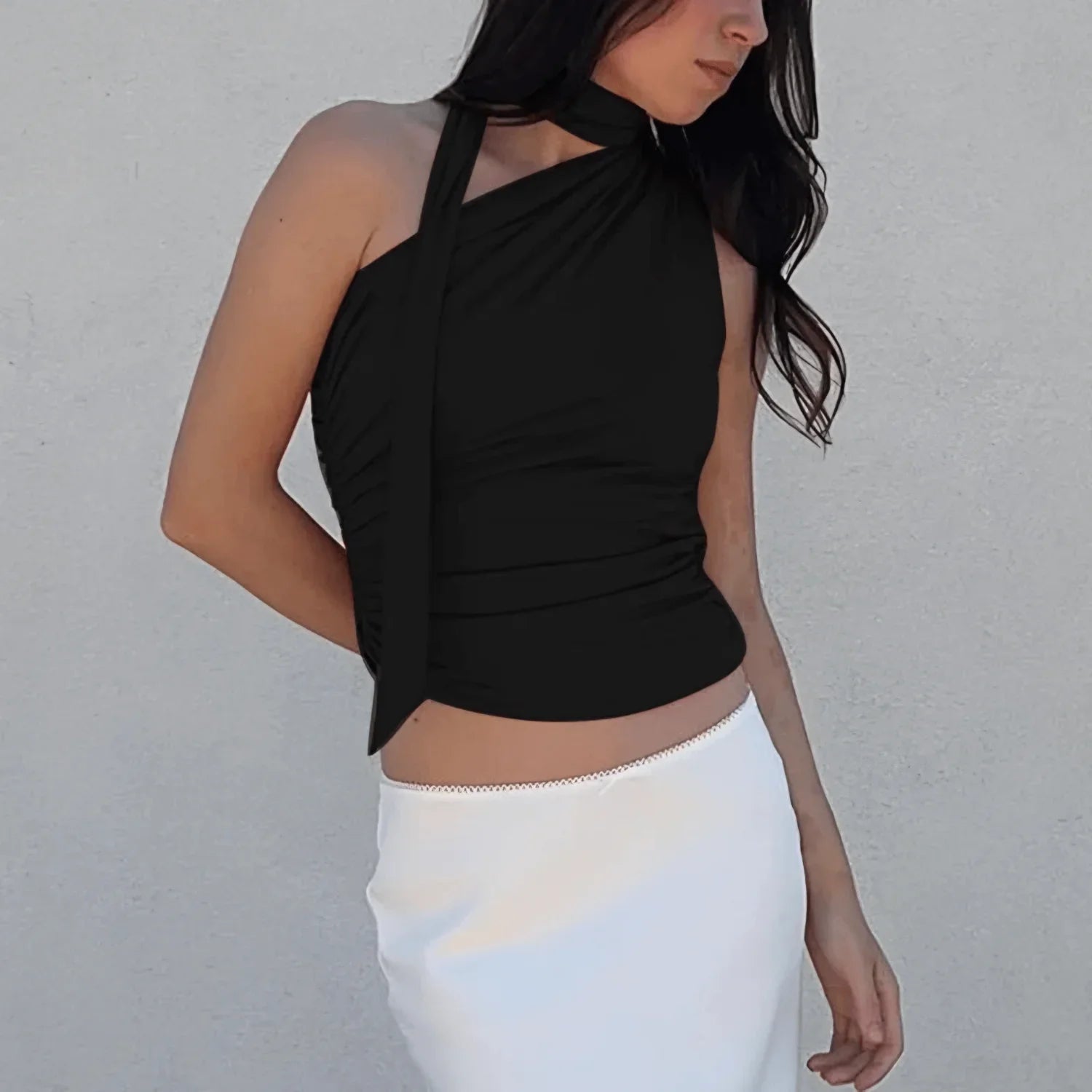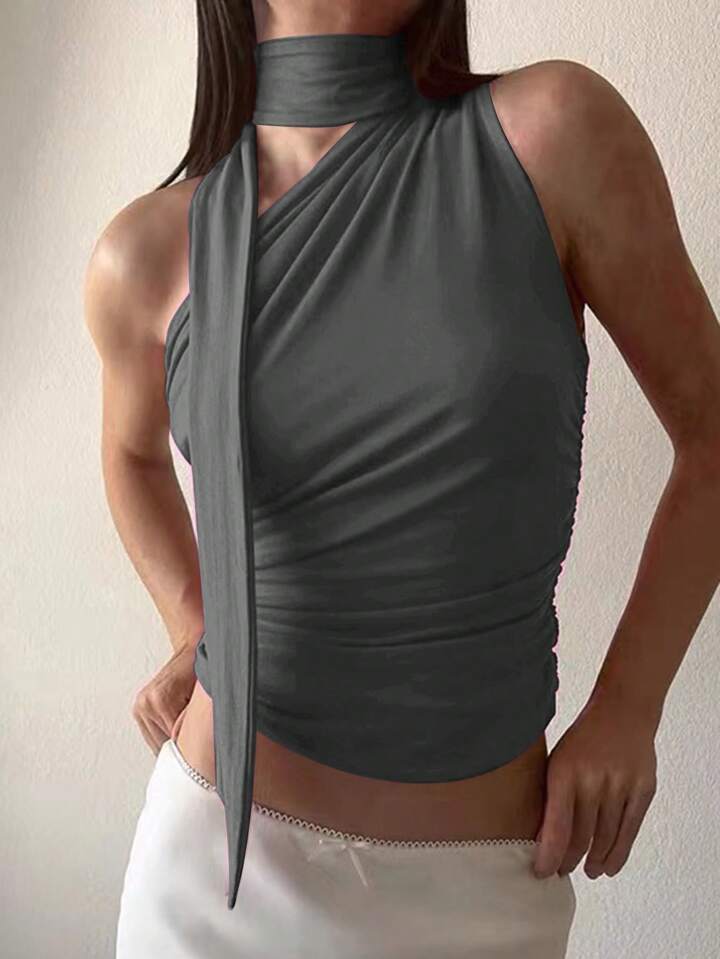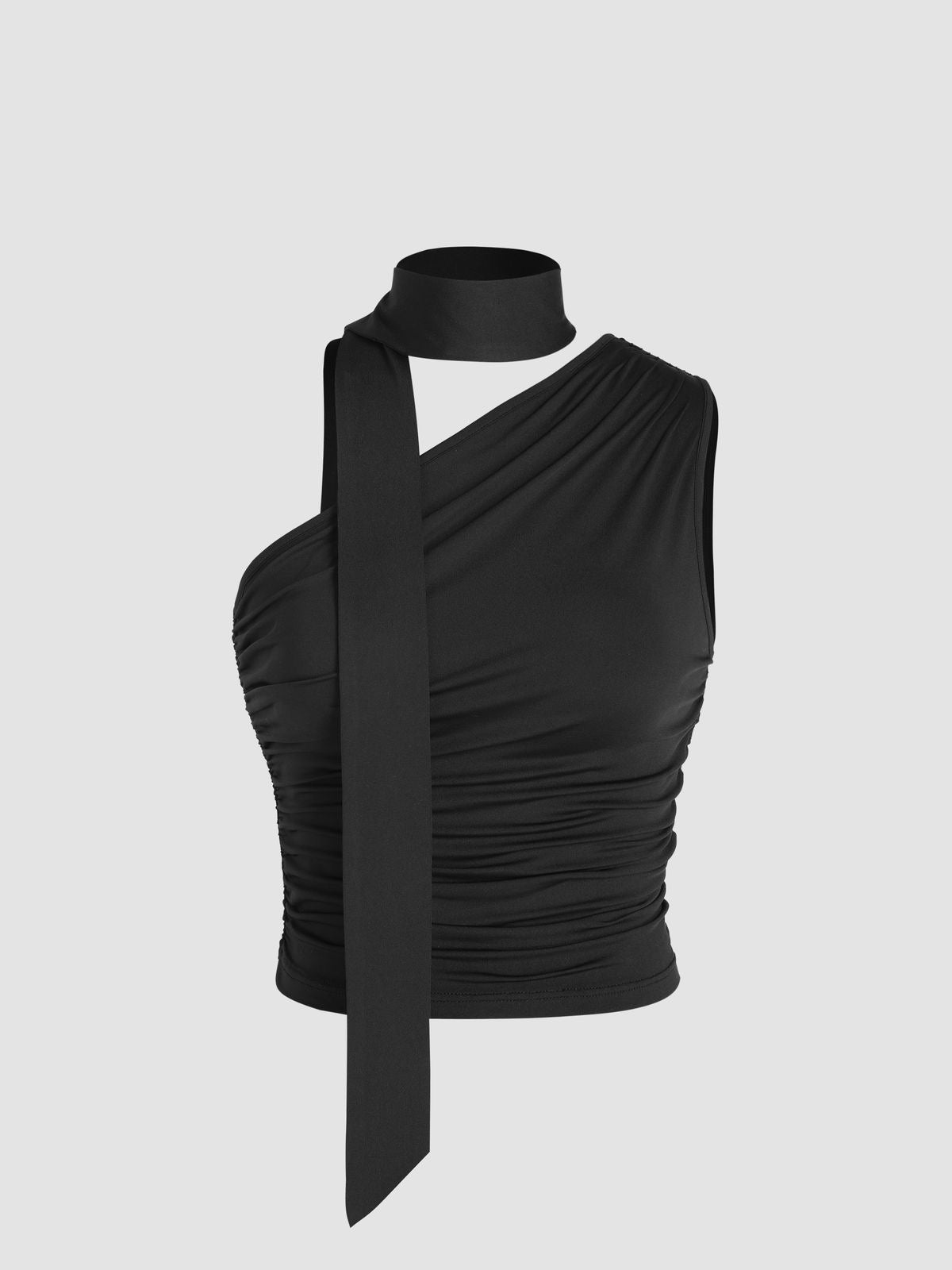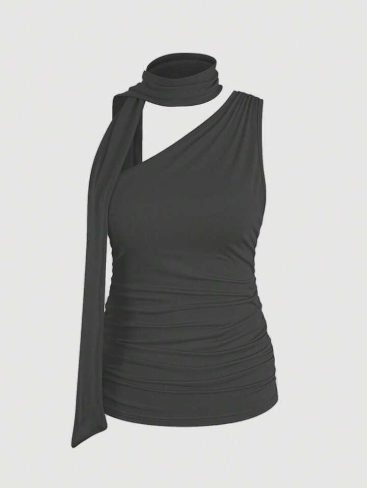 This silky luxe one shoulder top includes a matching scarf, giving you a versatile and elegant look. Made from high-quality materials, it offers a comfortable and luxurious feel. Elevate your wardrobe with this stylish and sophisticated piece.