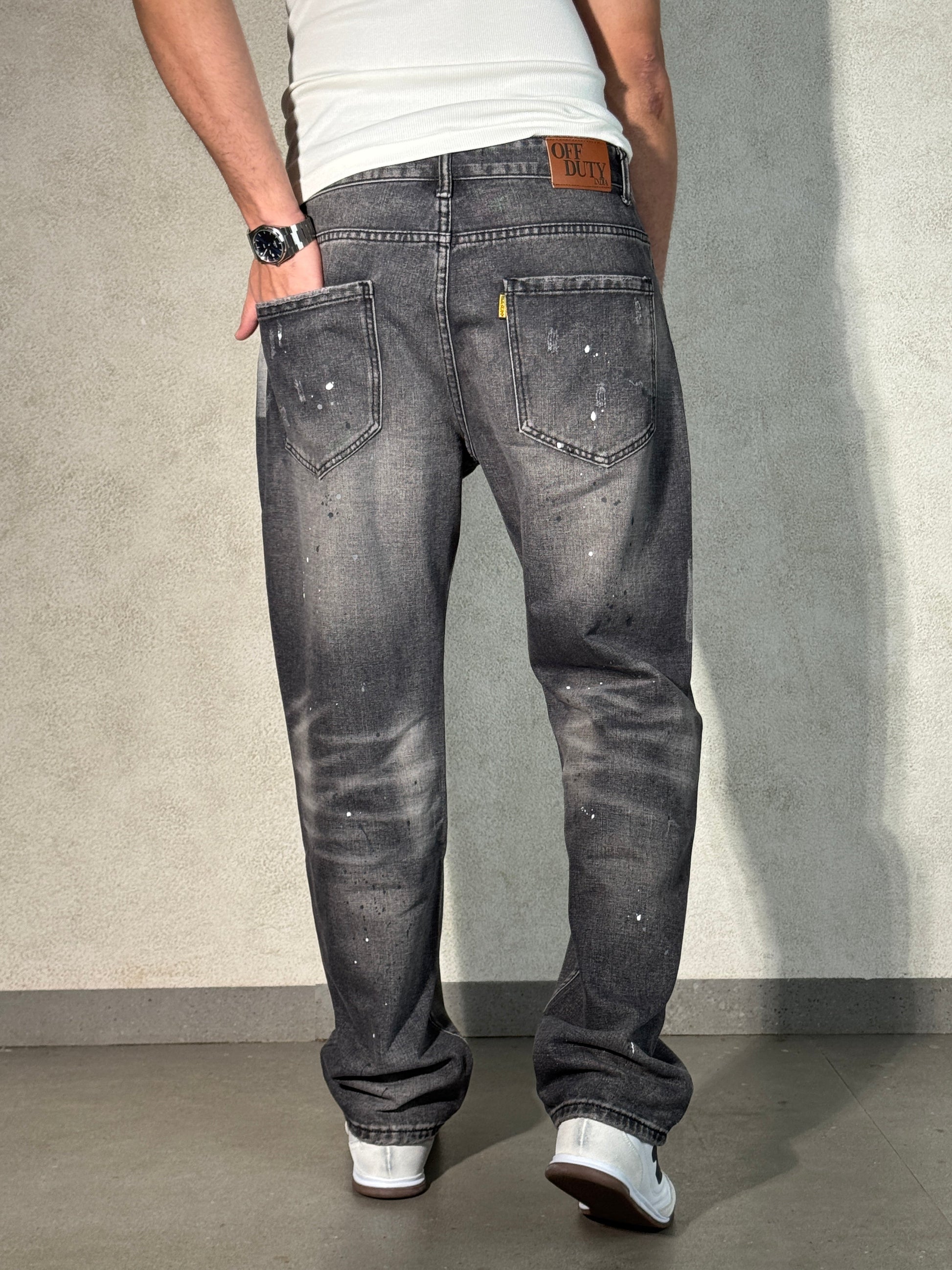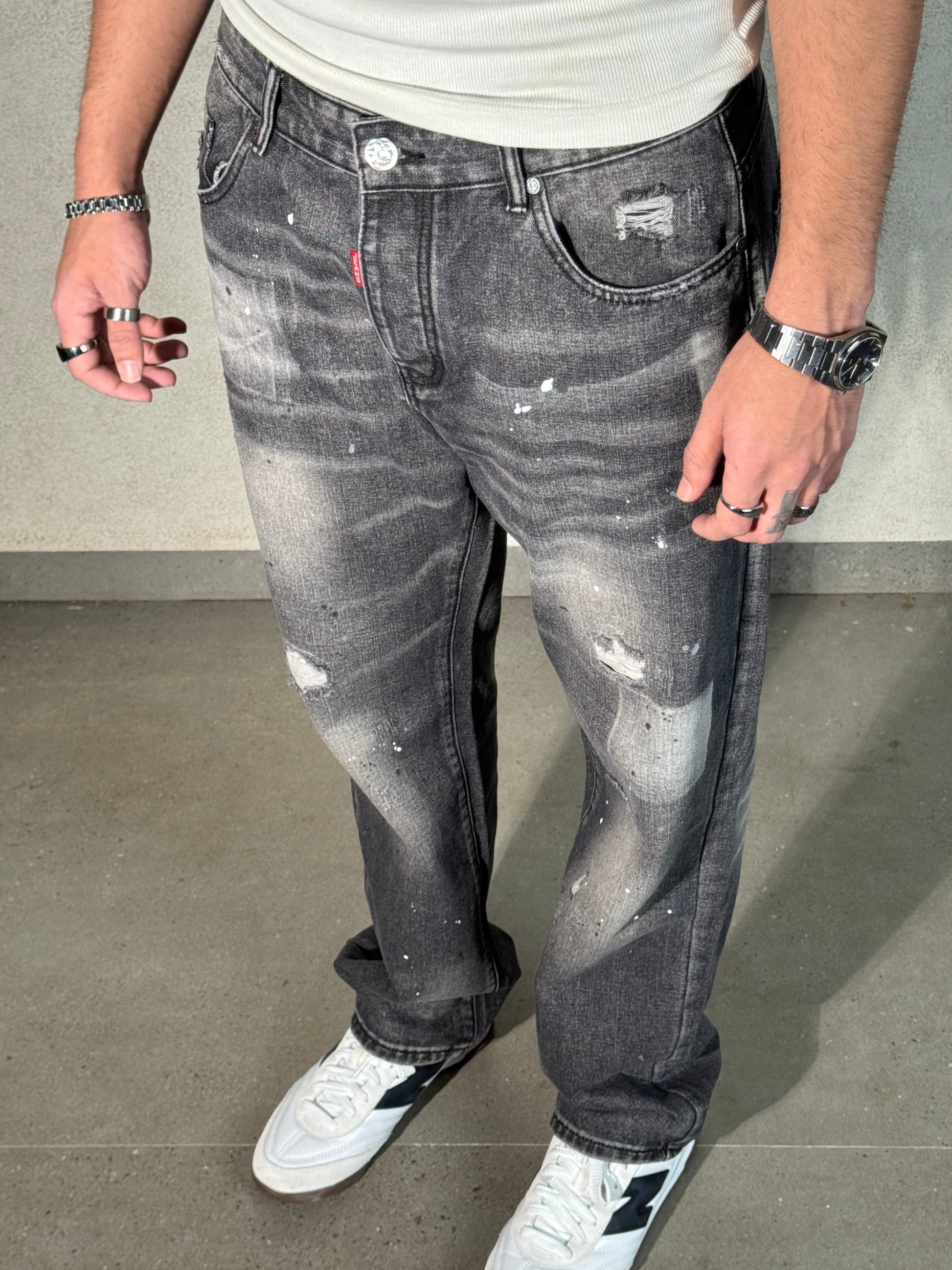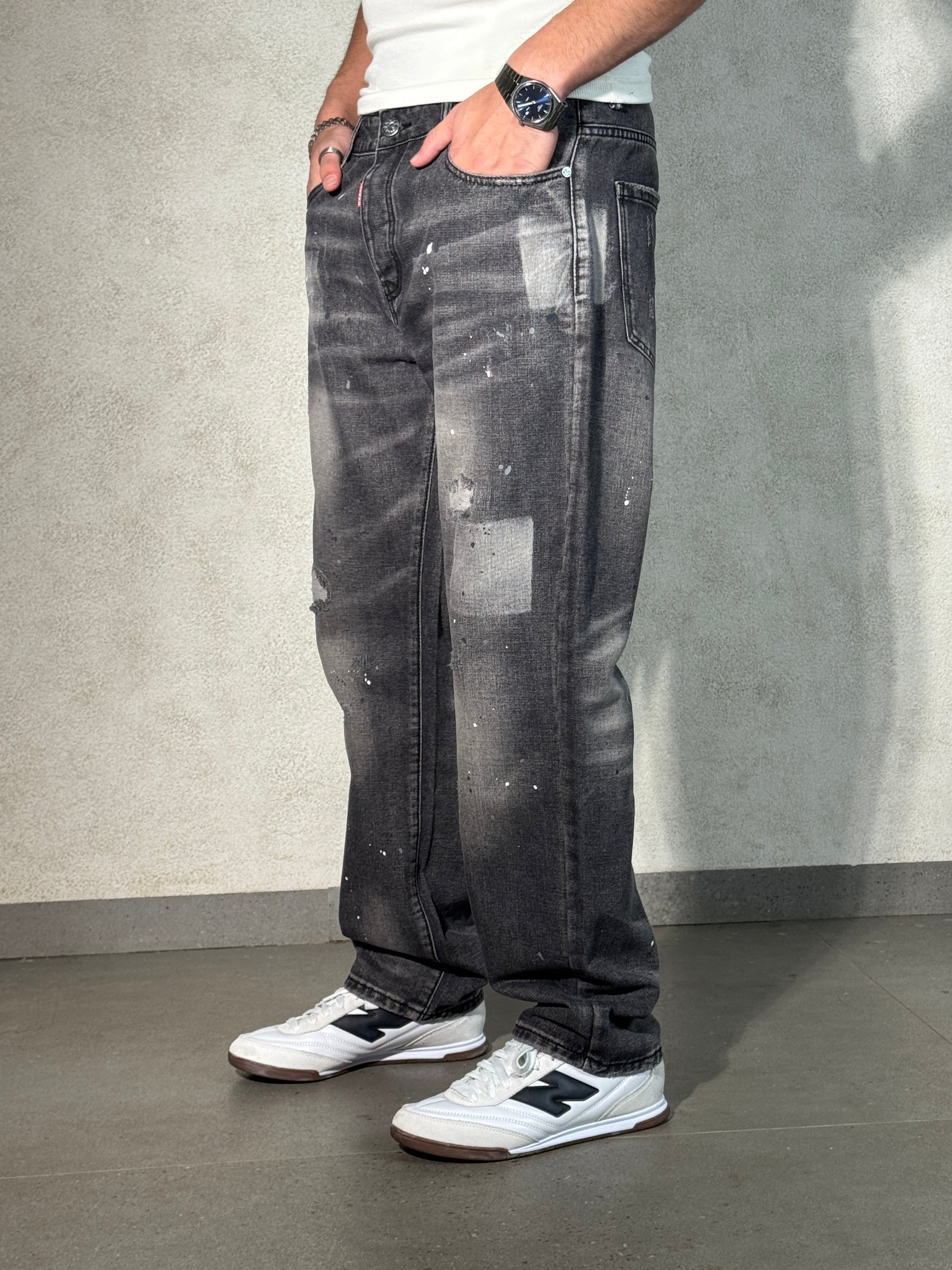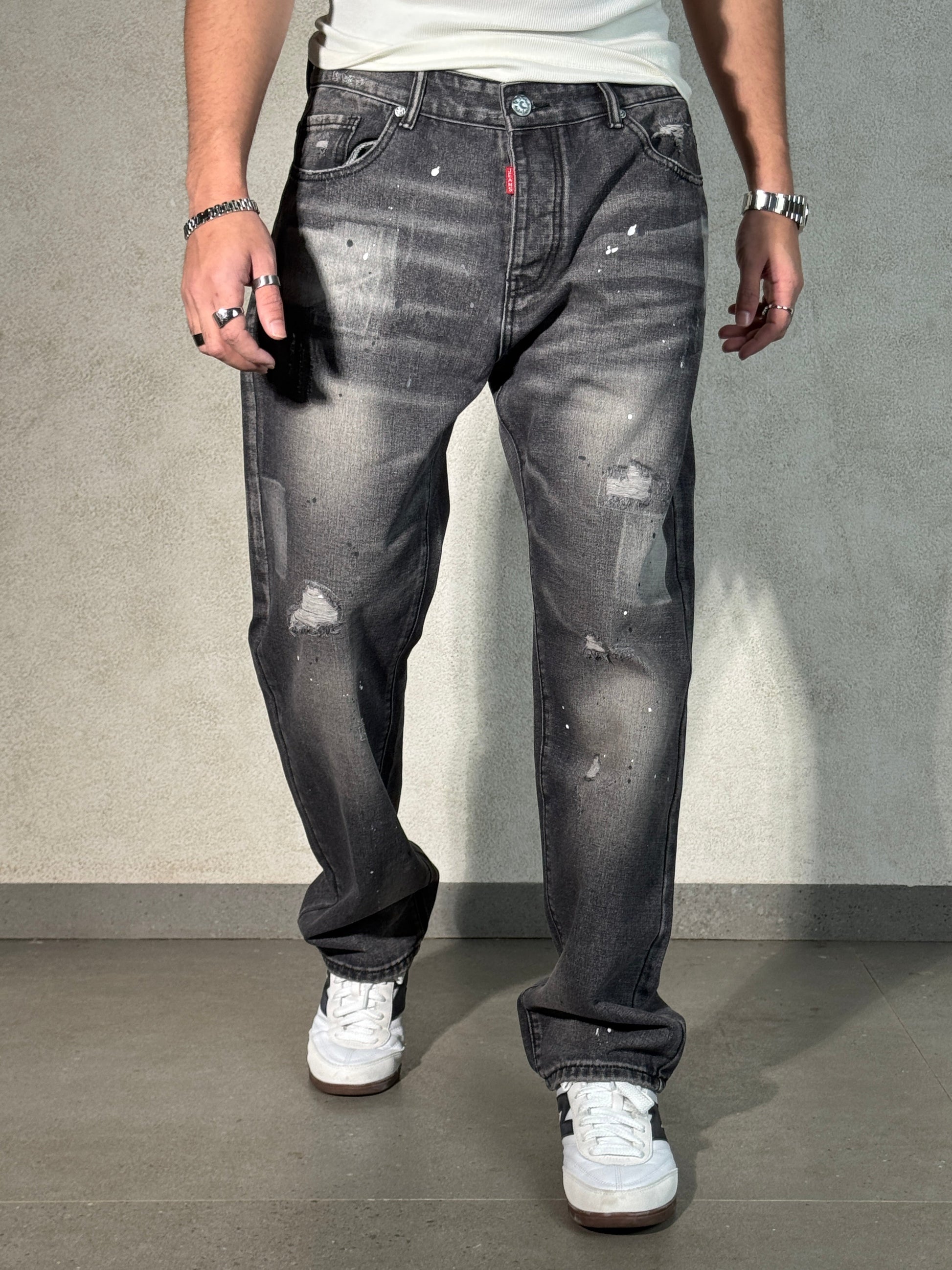 An edgy upgrade to the classic straight fit, these jeans feature a dark washed base elevated with distressed accents and bold spray-paint effect. Designed for effortless streetwear style, they strike the perfect balance between rugged and modern.