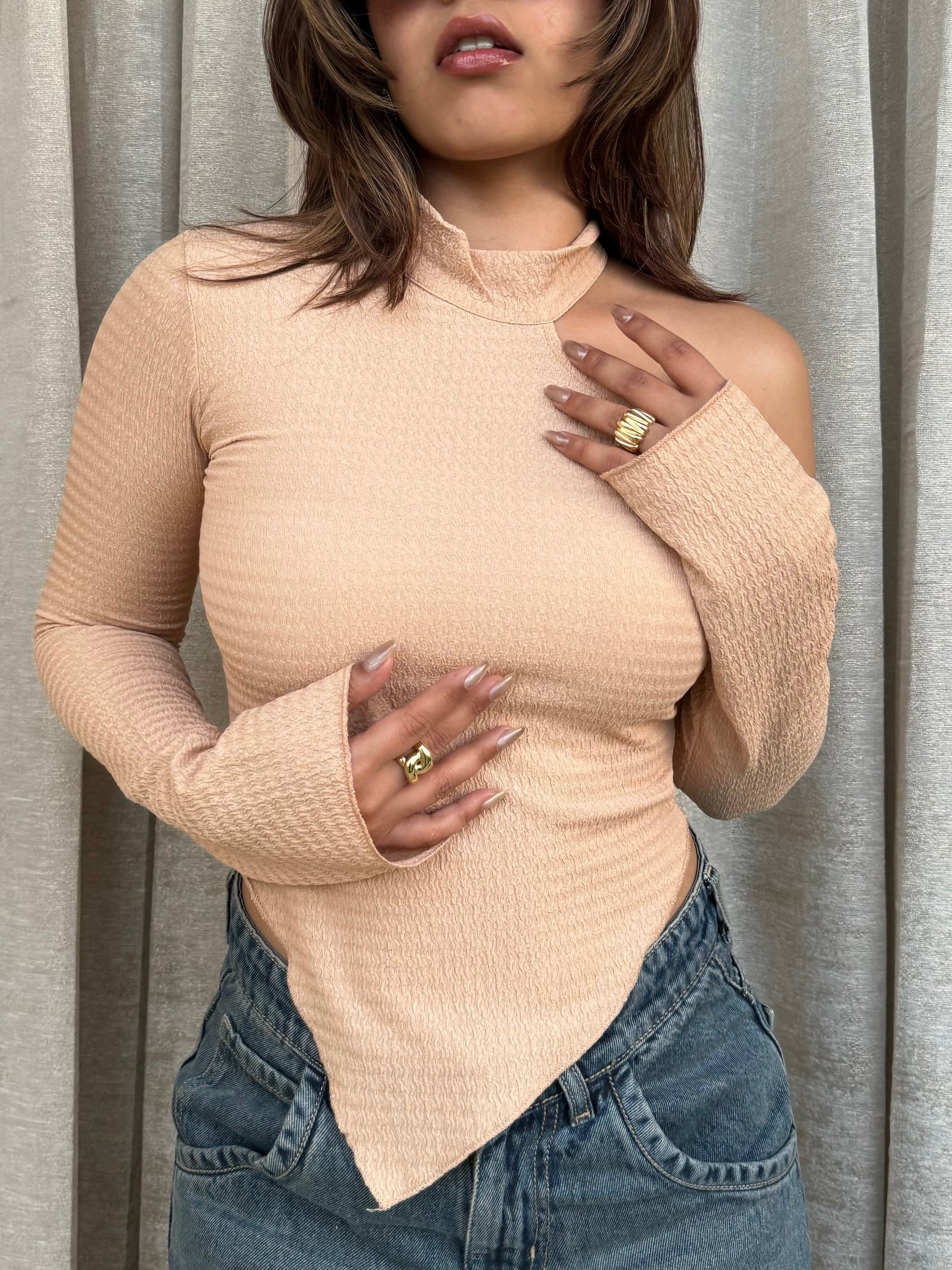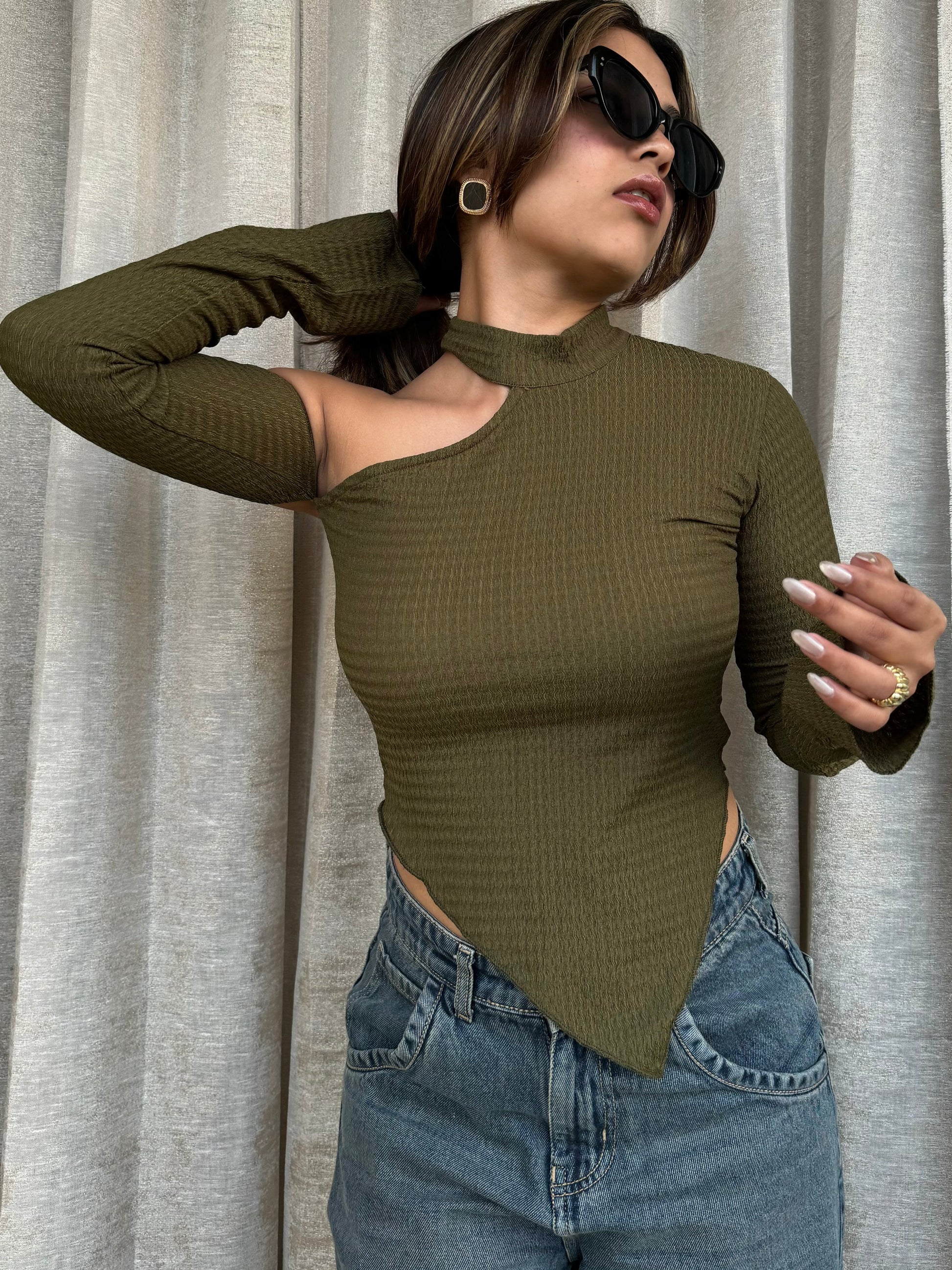 This Twist of Texture Asymmetrical Top adds a touch of sophistication and chicness to your wardrobe. The unique twist design adds texture and dimension to any outfit, while the asymmetrical cut provides a modern and stylish look. Made with high-quality materials, this top is both comfortable and durable. Elevate your style with this must-have top.
