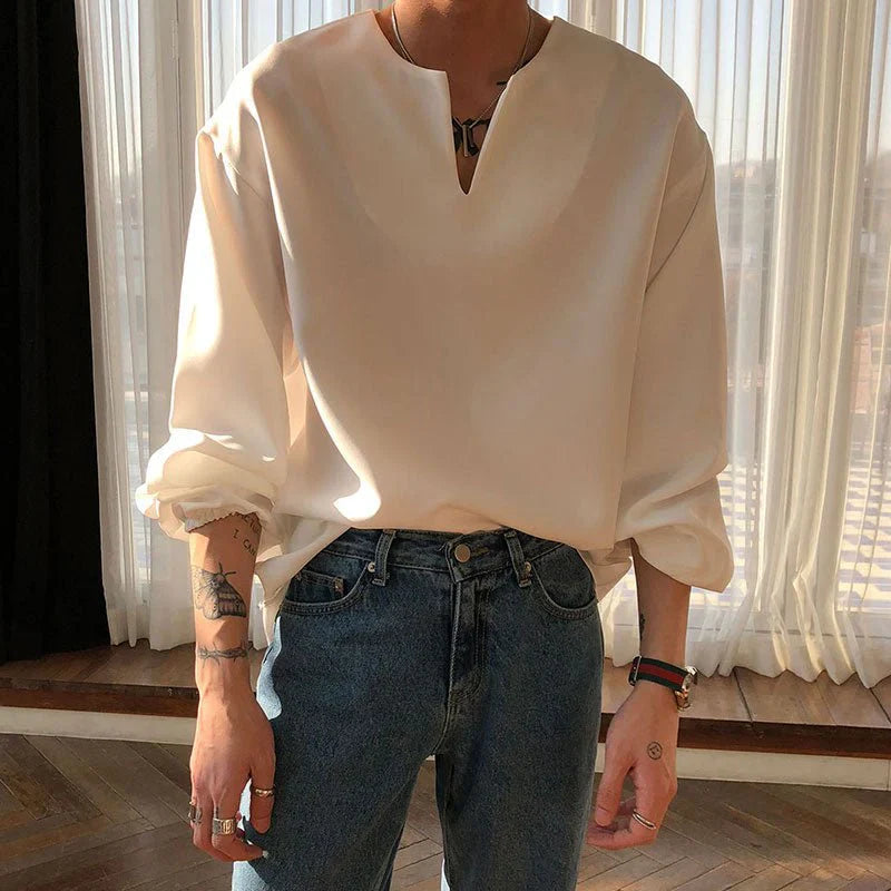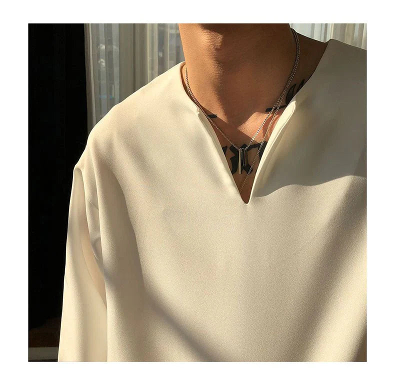 V Neck Cuff Details Long Sleeve Korean Shirt