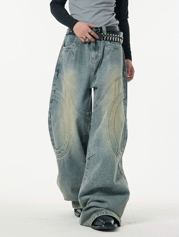 Expertly crafted with a dirty denim wash and curved stitched detailing, these Wide Leg Jeans offer a stylish and comfortable fit. Made from 100% denim fabric, they provide a durable and high-quality option for your wardrobe. Upgrade your denim game with these Washed Curved Stitches Wide Leg Jeans.